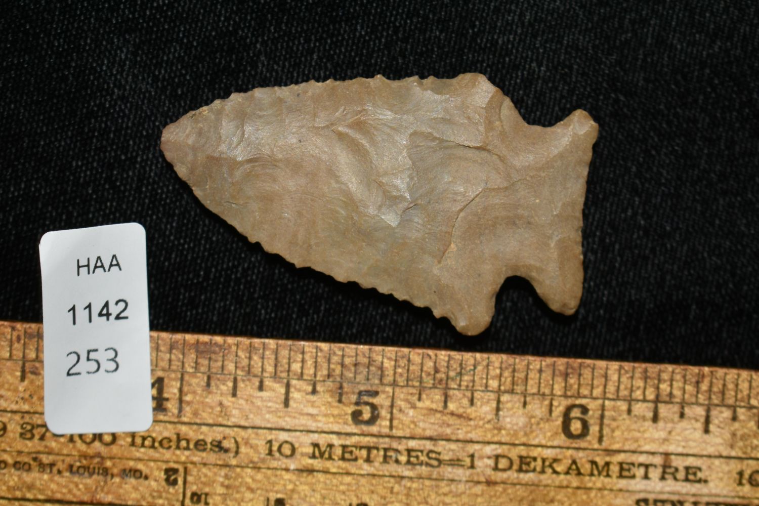 NICE 2 1/8" PINETREE FOUND IN THE BENTON / HUMPHREYS COUNTY TENNESSEE AREA BY E.J. SIMS, INDIAN ARROWHEAD, ARTIFACT