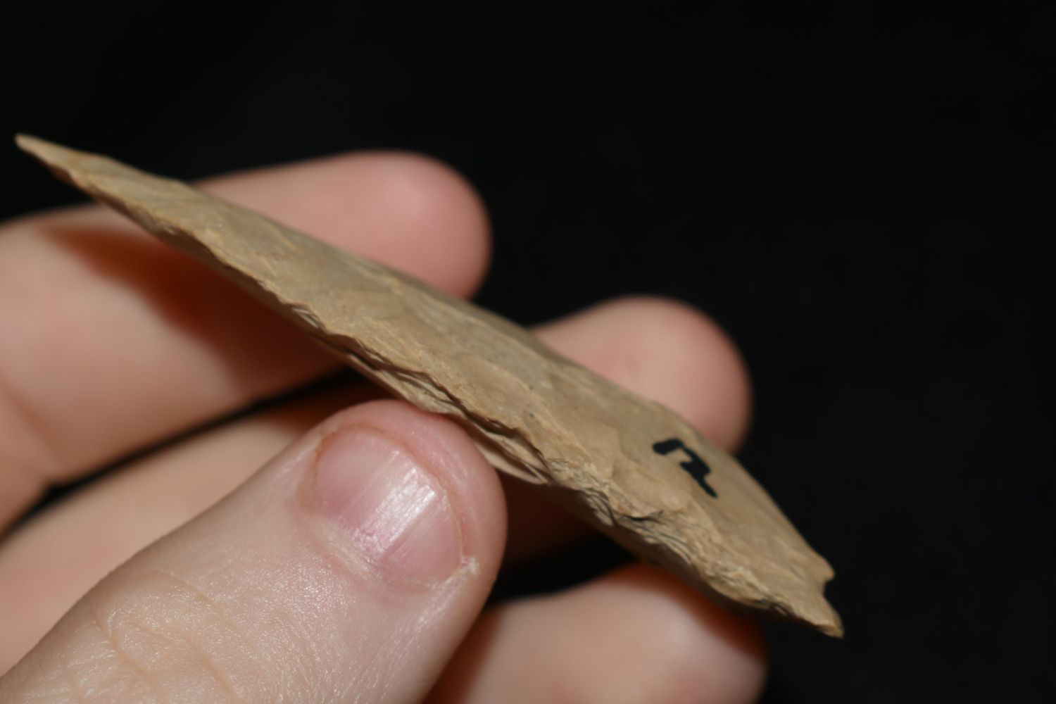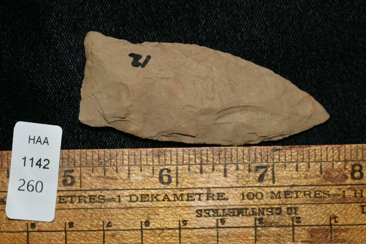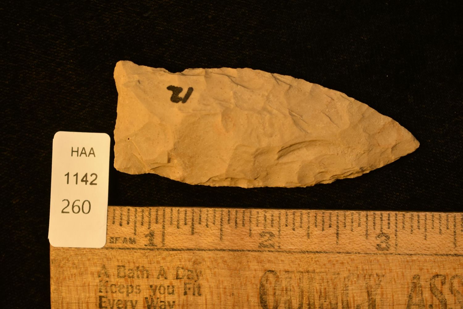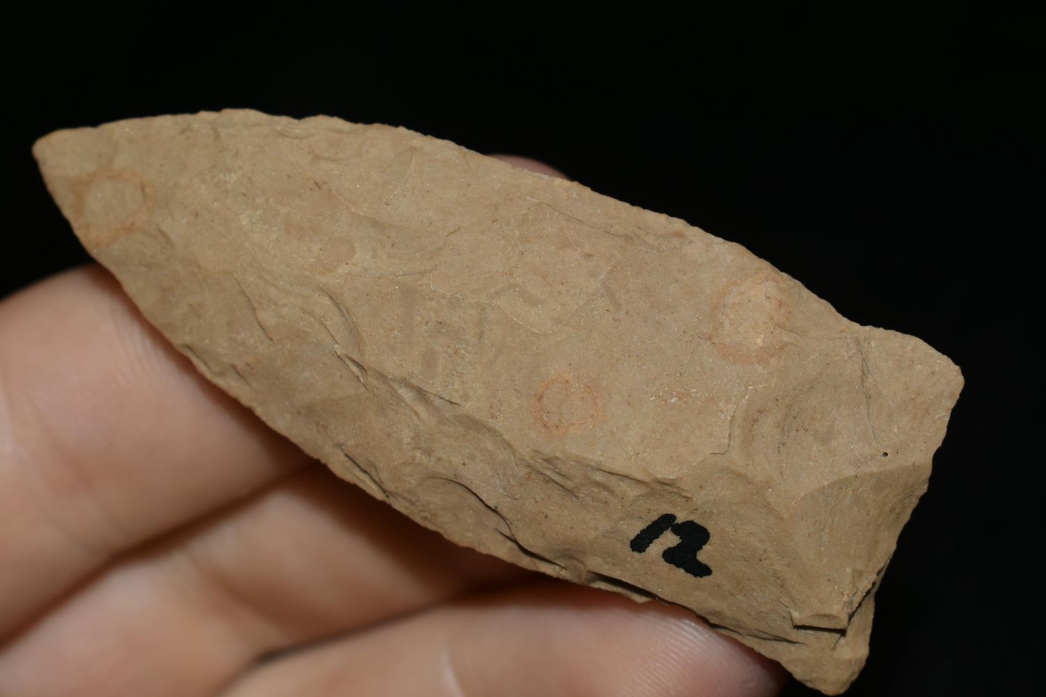 2 5/8" LONG COPENA FOUND IN THE BENTON / HUMPHREYS COUNTY TENNESSEE AREA BY E.J. SIMS, INDIAN ARROWHEAD, ARTIFACT