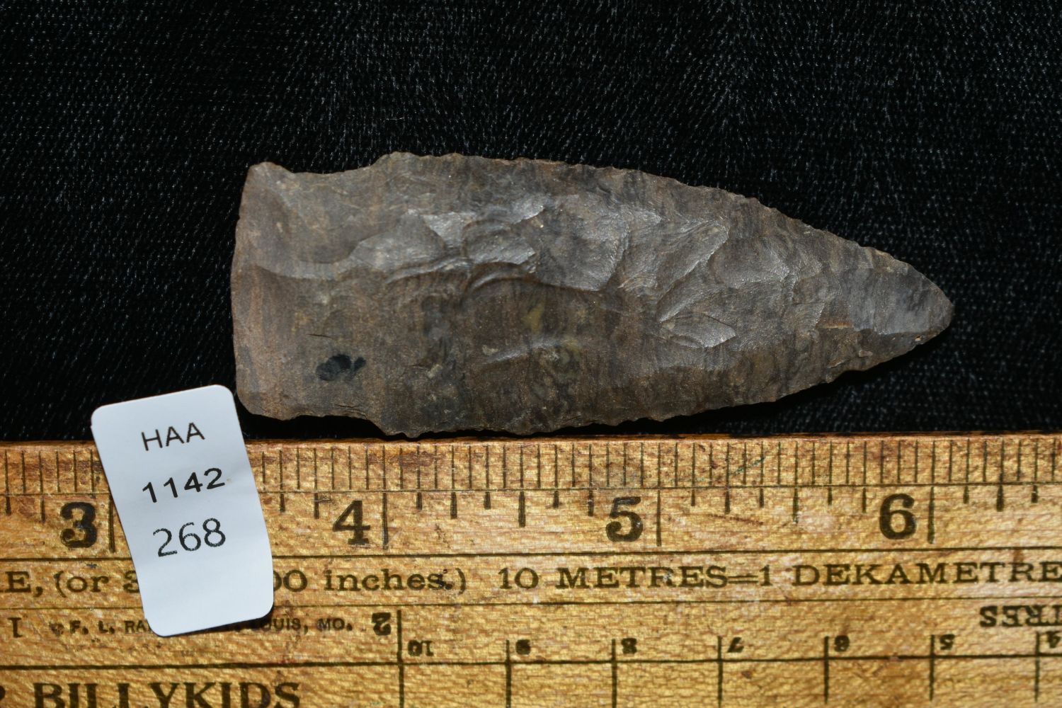 NICE 2 5/8" HARPETH RIVER FOUND IN THE BENTON / HUMPHREYS COUNTY TENNESSEE AREA BY E.J. SIMS, INDIAN ARROWHEAD, ARTIFACT