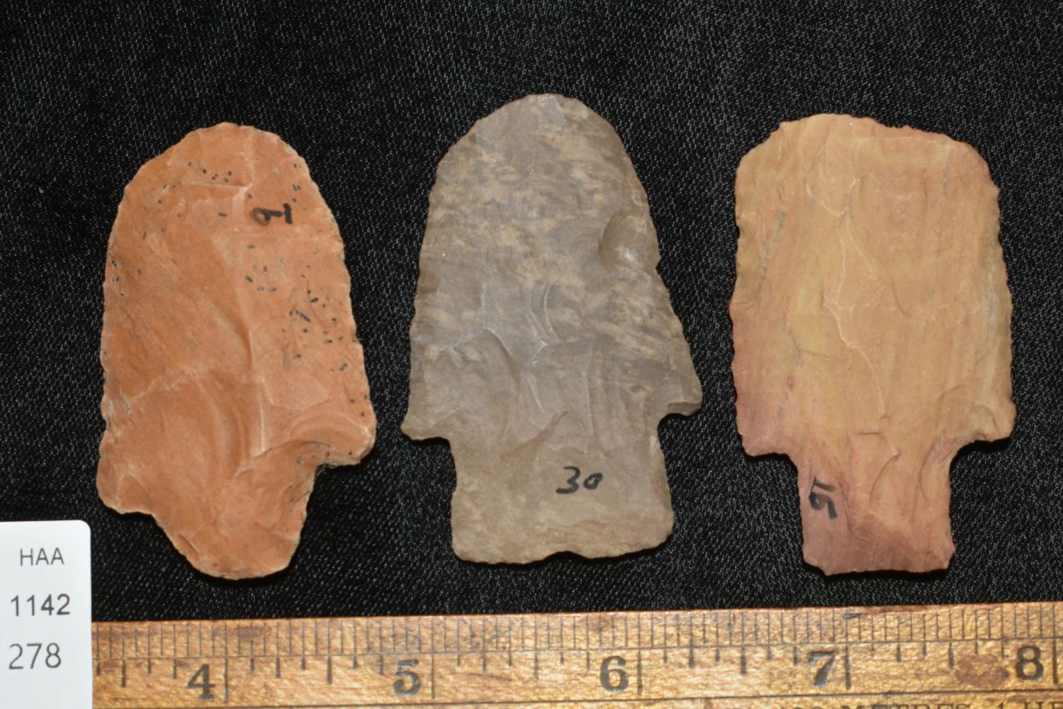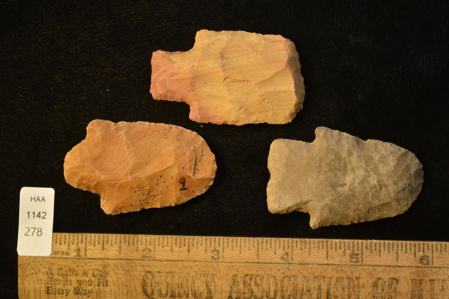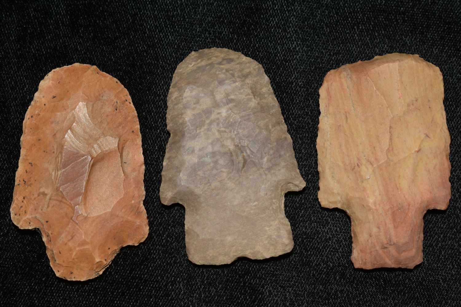 LOT OF 3 LARGE HAFTED SCRAPERS, WELL FLAKED EXAMPLES, FOUND IN THE BENTON / HUMPHREYS COUNTY TENNESSEE AREA BY E.J. SIMS, INDIAN ARROWHEAD, ARTIFACT