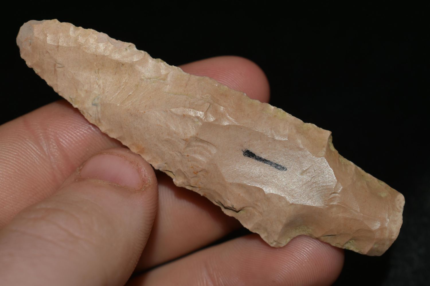 3 1/8" LONG LITTLE BEAR CREEK FOUND IN THE BENTON / HUMPHREYS COUNTY TENNESSEE AREA BY E.J. SIMS, INDIAN ARROWHEAD, ARTIFACT