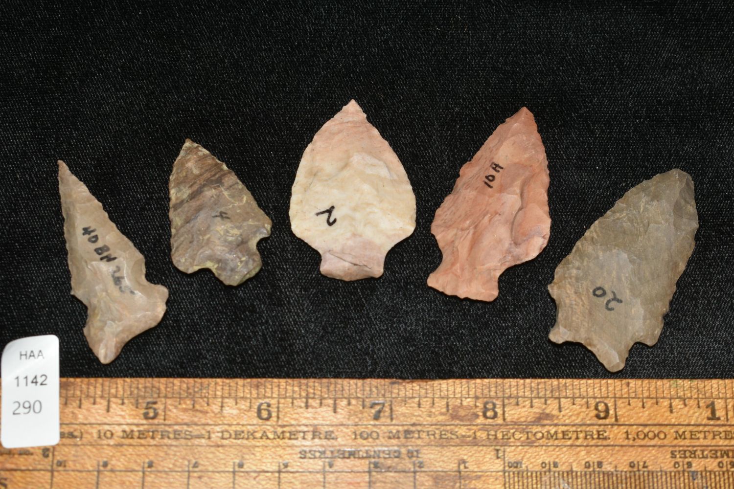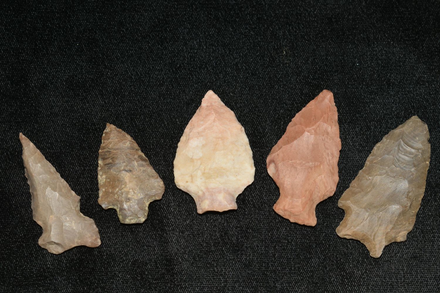 LOT OF 5 MOSTLY ARCHAIC POINTS FOUND IN THE BENTON / HUMPHREYS COUNTY TENNESSEE AREA BY E.J. SIMS, INDIAN ARROWHEAD, ARTIFACT