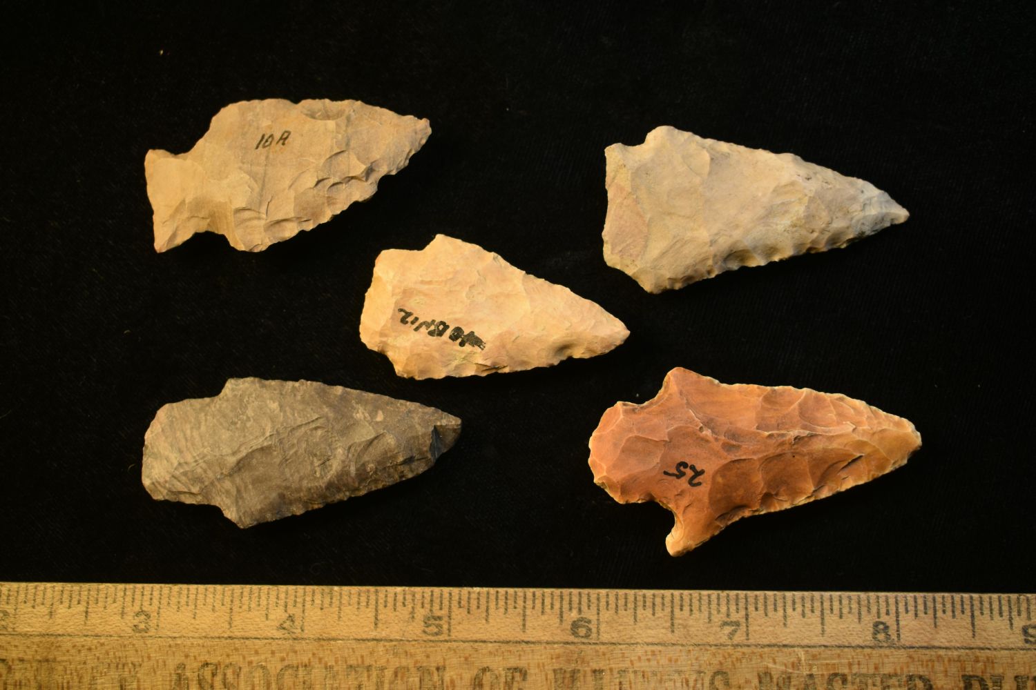 LOT OF 5 MOSTLY ARCHAIC POINTS FOUND IN THE BENTON / HUMPHREYS COUNTY TENNESSEE AREA BY E.J. SIMS, INDIAN ARROWHEAD, ARTIFACT