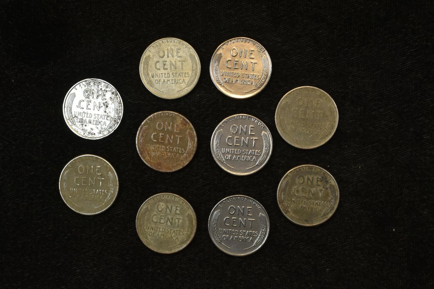 LOT OF (10) 1943 P, D, & S WAR TIME STEEL CENTS, LINCOLN WHEAT PENNY