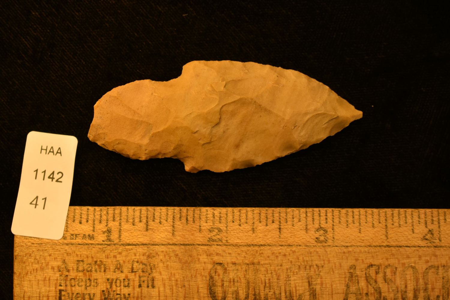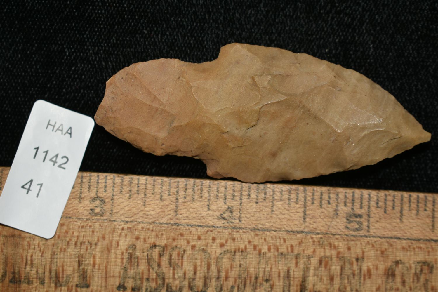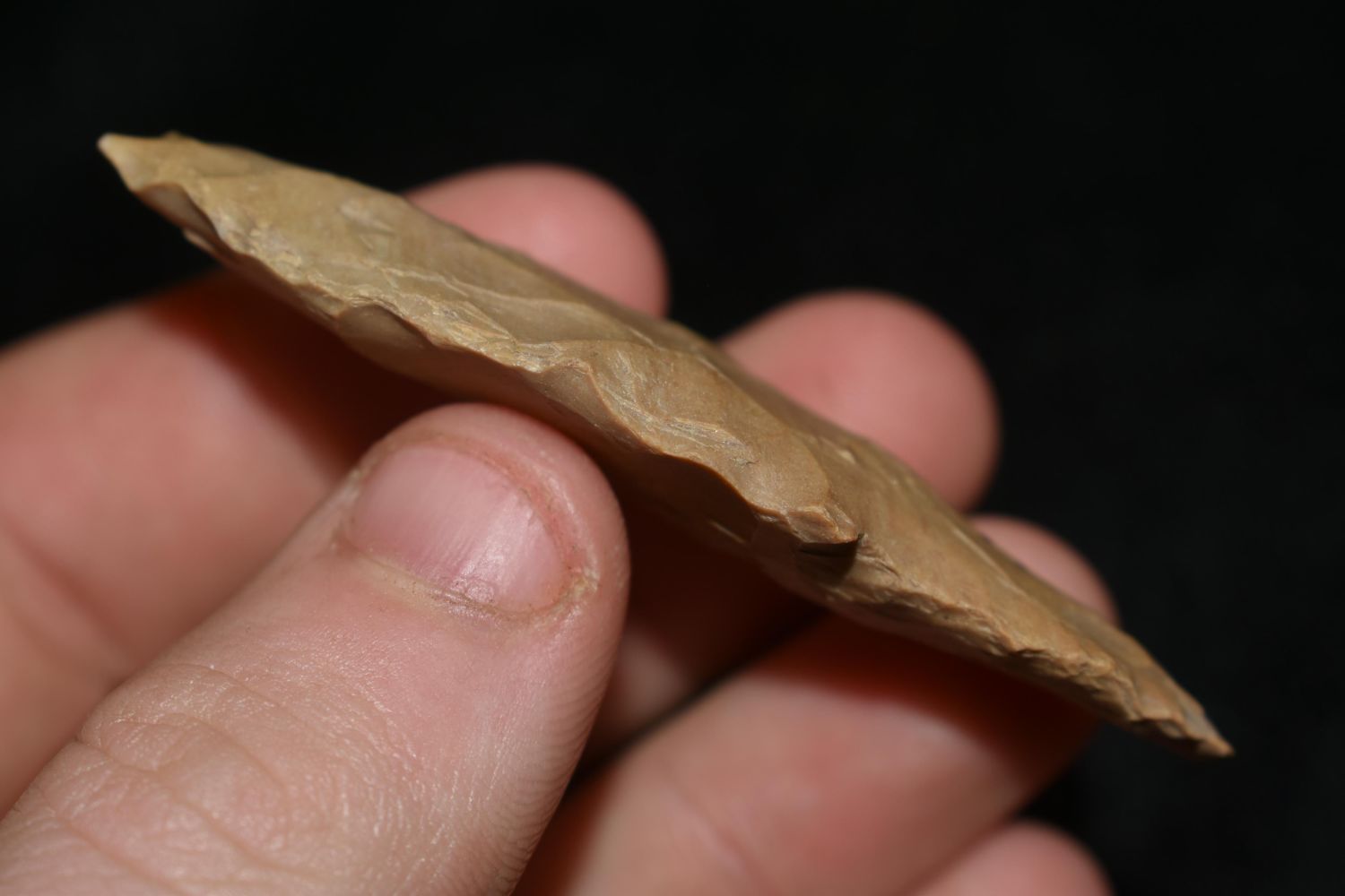 2 5/8" LONG TURKEYTAIL FOUND IN THE BENTON / HUMPHREYS COUNTY TENNESSEE AREA BY E.J. SIMS, INDIAN ARROWHEAD, ARTIFACT