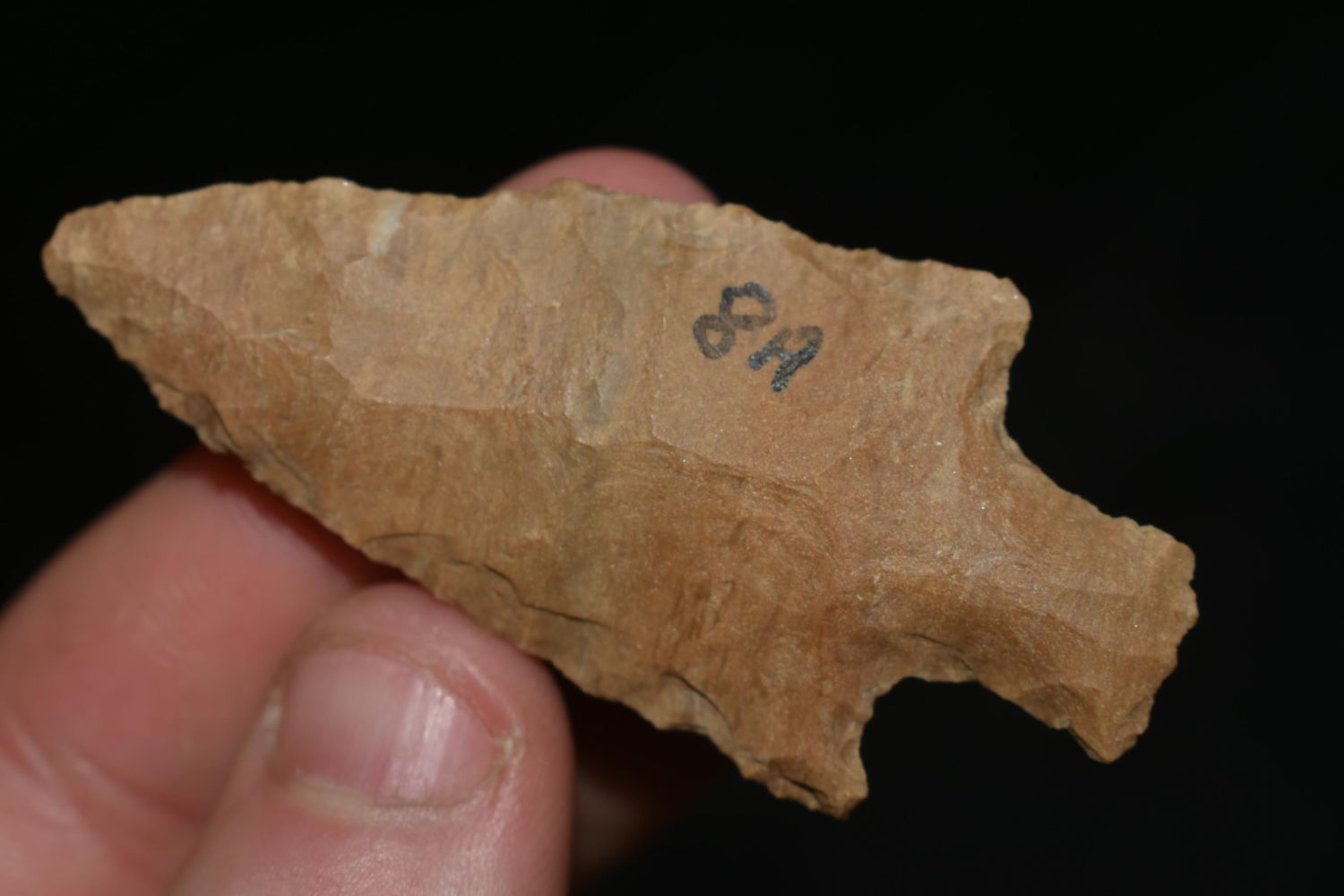 2 3/8" LONG BUCK CREEK FOUND IN THE BENTON / HUMPHREYS COUNTY TENNESSEE AREA BY E.J. SIMS, INDIAN ARROWHEAD, ARTIFACT