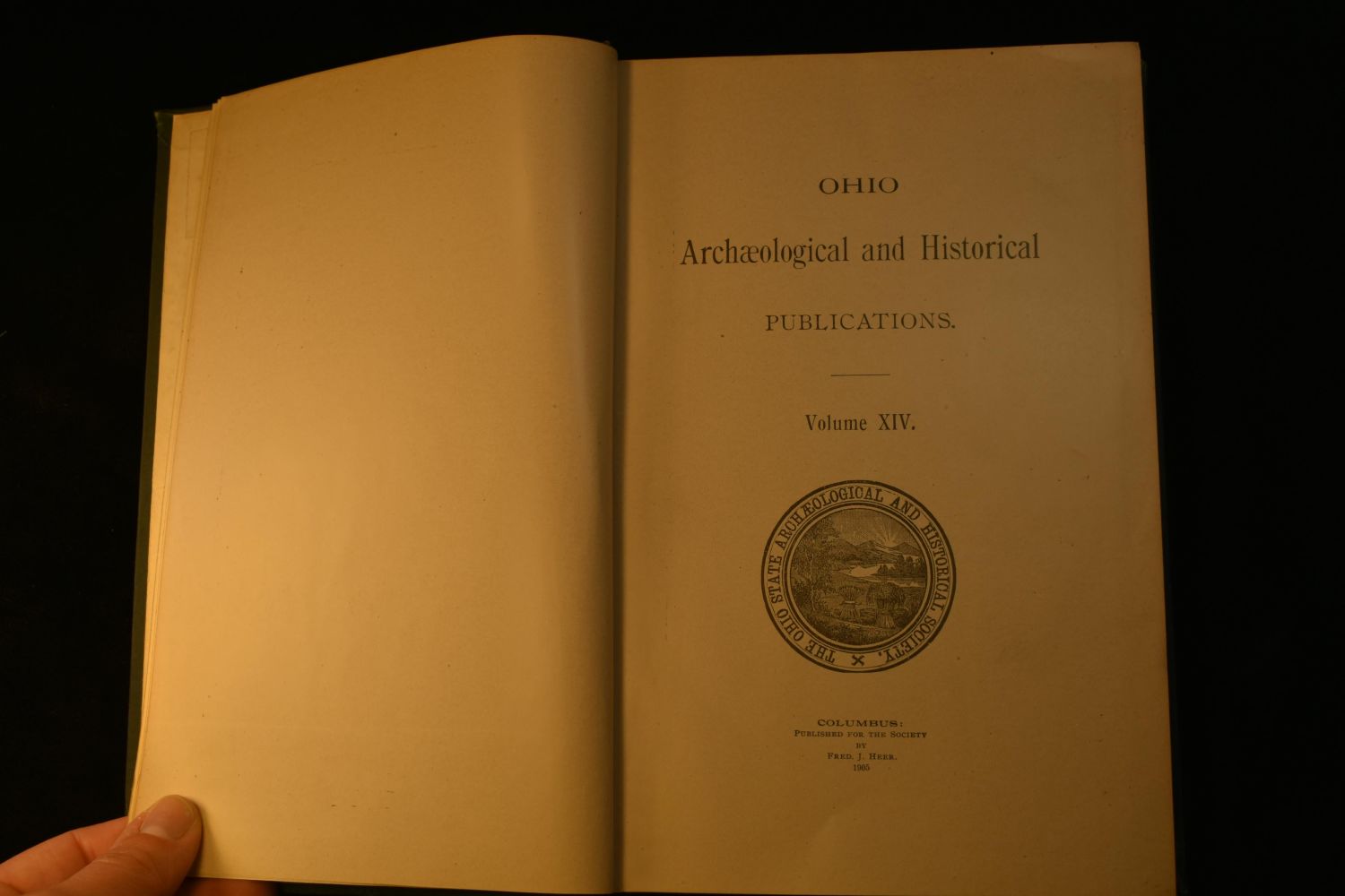 BOOK; OHIO ARCHAEOLOGICAL AND HISTORICAL PUBLICATIONS, VOLUME 14, 1905, HARDBACK, FIRST EDITION PRINTED IN 1905, 490 PAGES