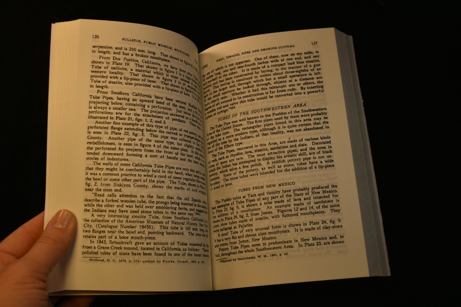 BOOK; TOBACCO, PIPES, AND SMOKING CUSTOMS OF THE AMERICAN INDIANS, GEORGE WEST, REPRINT OF THE 1934 ORIGINAL, 480 PAGES