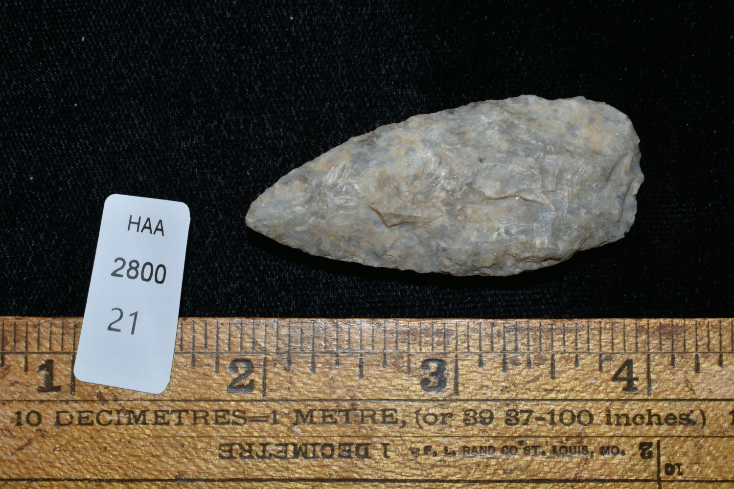 2 1/8" Colored Nebo Hill, Found by Delbert Roush. Delbert Hunted Artifacts Around Winchester & Bluffs, Illinois. Delbert Passed Away March of 1982. His Daughter Then Inherited His Collection Which is What We Are Now Selling In This Auction., Native American Artifacts