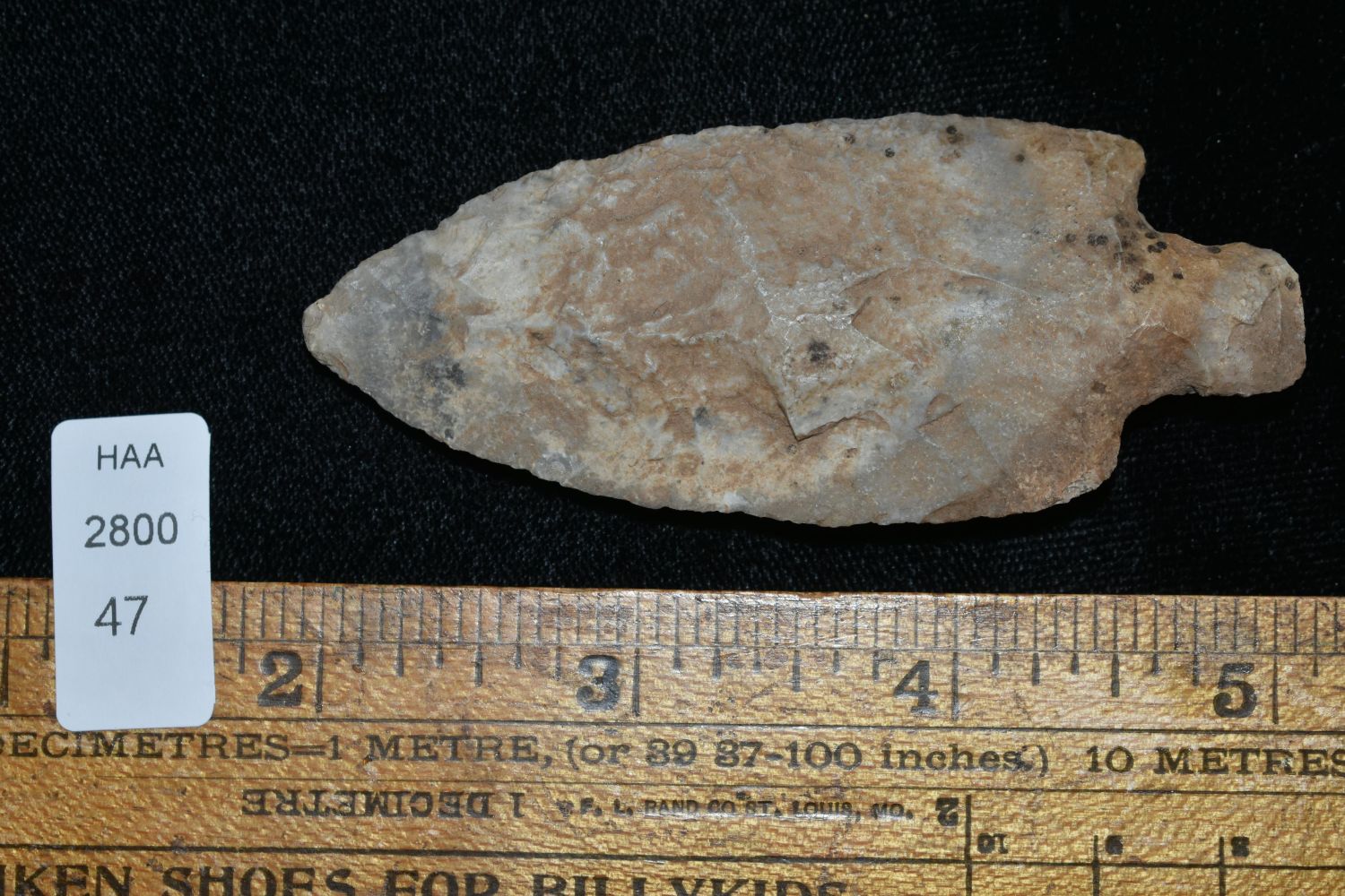 3 1/4" Table Rock, Classic Form, Found by Delbert Roush. Delbert Hunted Artifacts Around Winchester & Bluffs, Illinois. Delbert Passed Away March of 1982. His Daughter Then Inherited His Collection Which is What We Are Now Selling In This Auction., Native American Artifacts