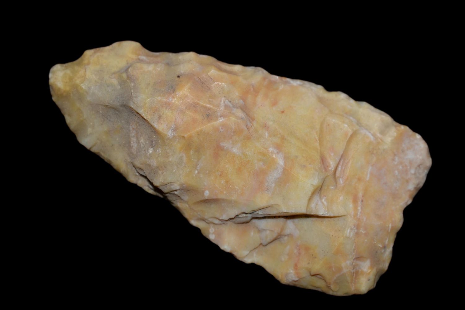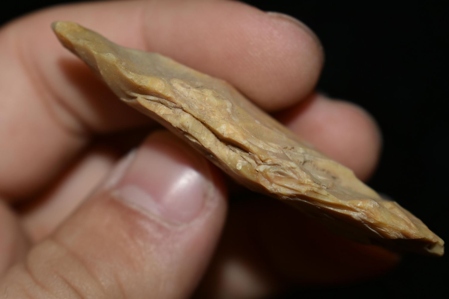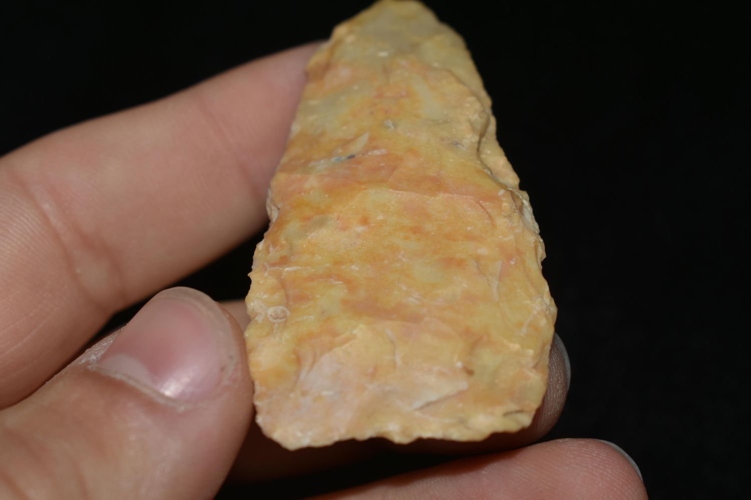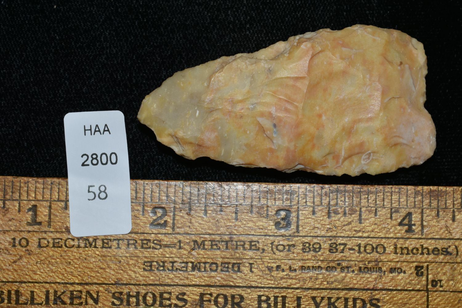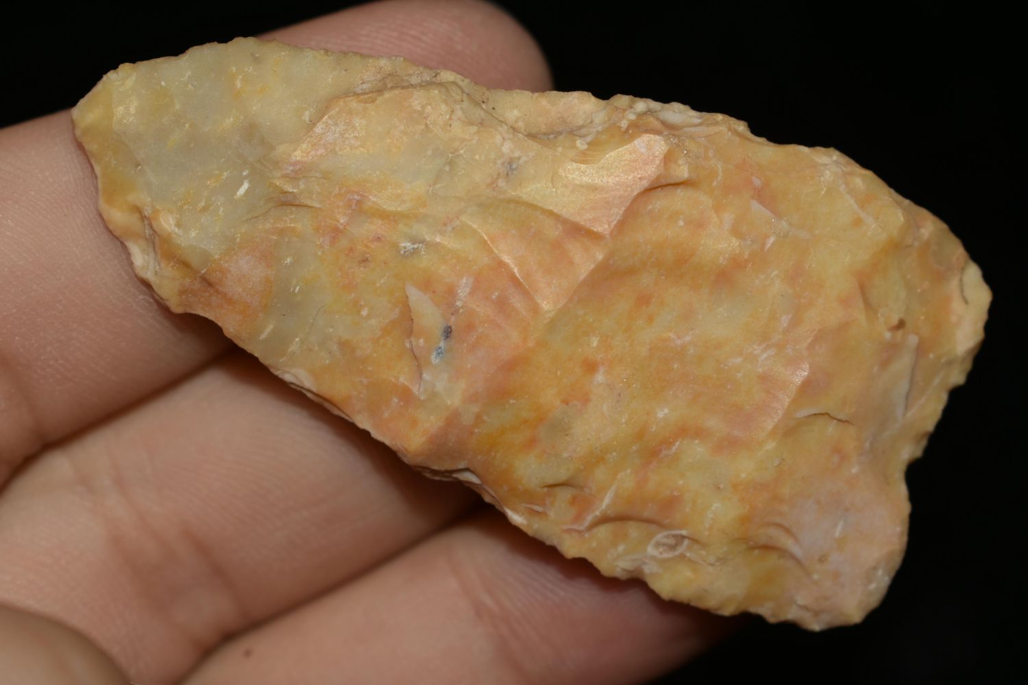 2 1/2" Creek Stained Blade, Found by Delbert Roush. Delbert Hunted Artifacts Around Winchester & Bluffs, Illinois. Delbert Passed Away March of 1982. His Daughter Then Inherited His Collection Which is What We Are Now Selling In This Auction., Native American Artifacts