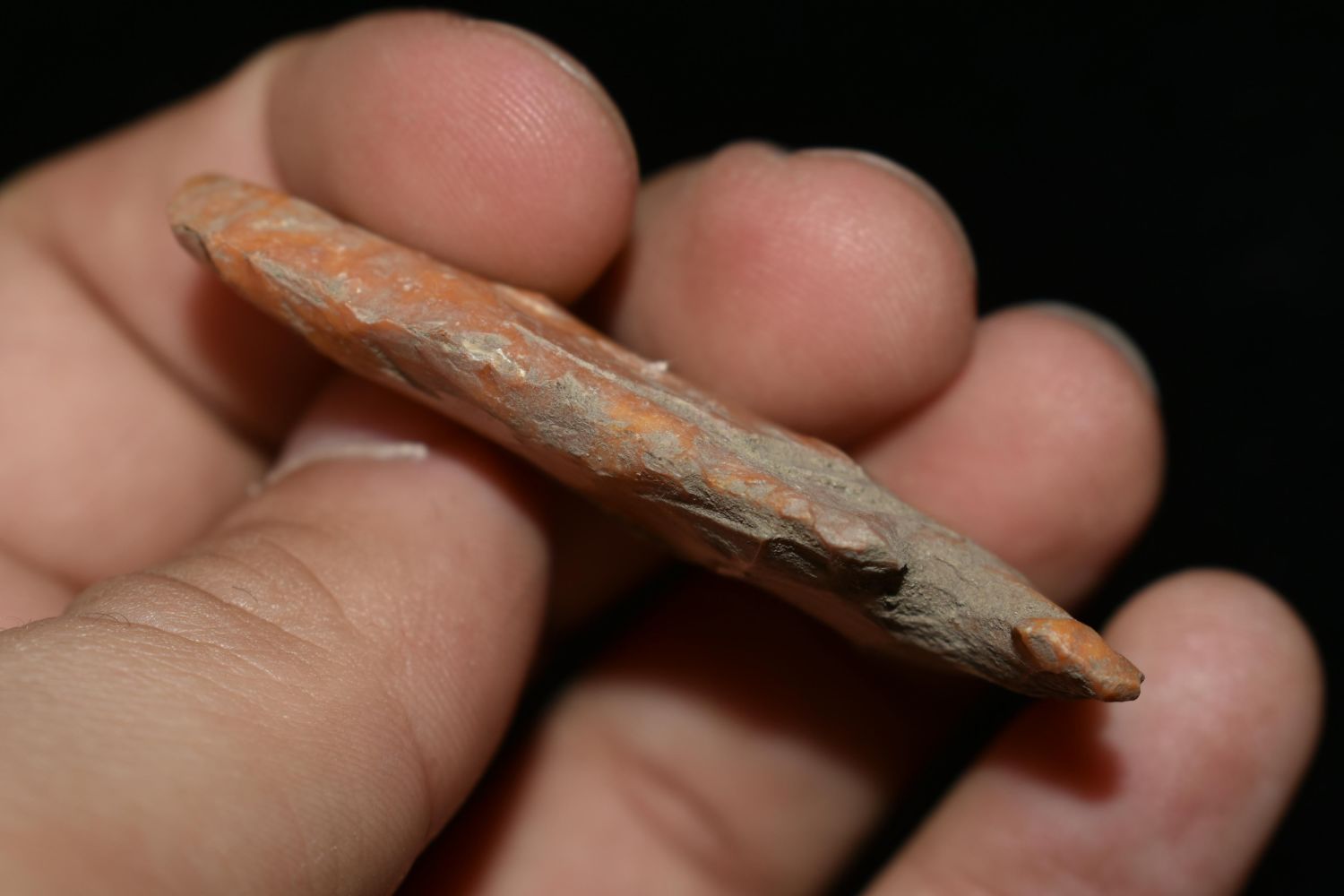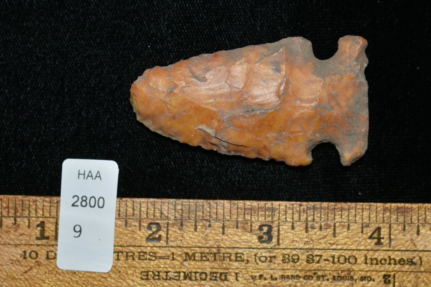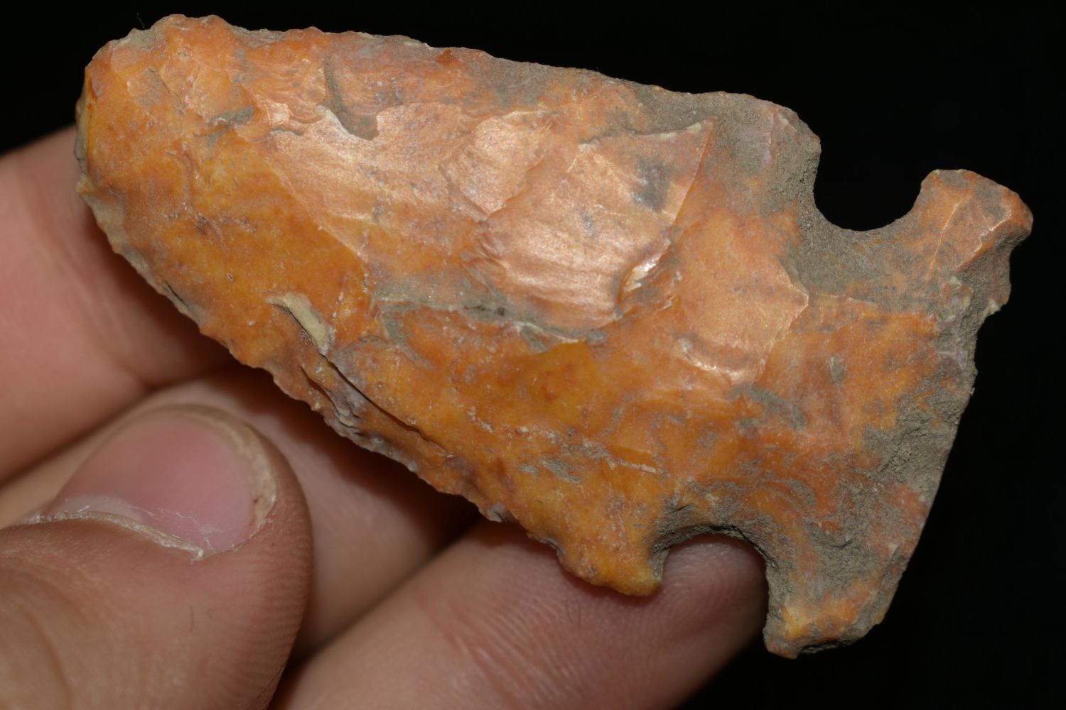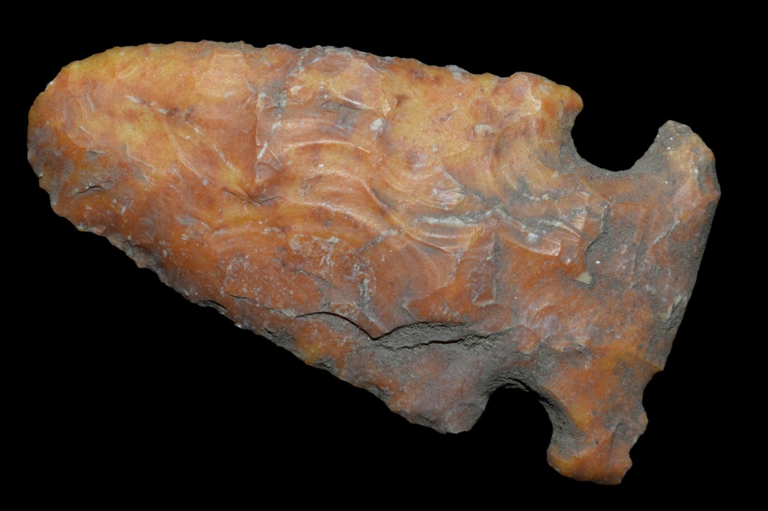 2 1/4" Creek Stained Godar, Great Color, Found by Delbert Roush. Delbert Hunted Artifacts Around Winchester & Bluffs, Illinois. Delbert Passed Away March of 1982. His Daughter Then Inherited His Collection Which is What We Are Now Selling In This Auction., Native American Artifacts