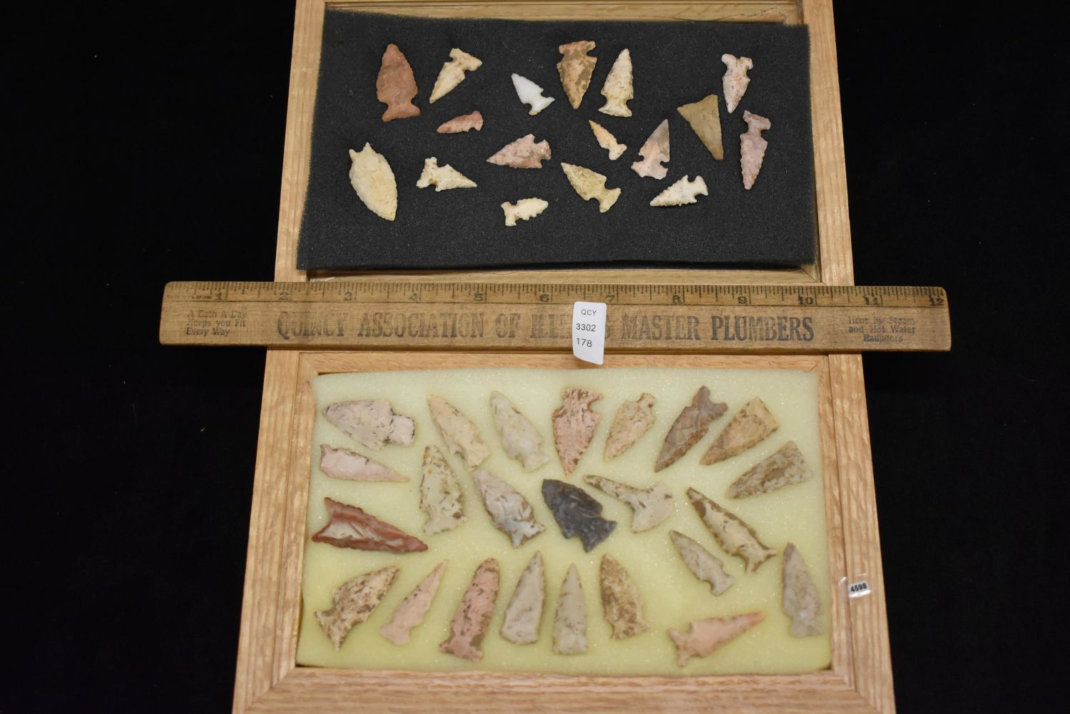 6" x 9" Frame Containing Birdpoints Found in Illinois, Native American Artifacts