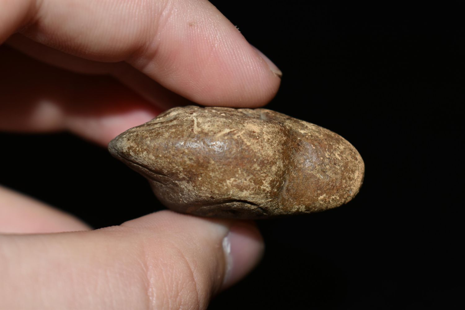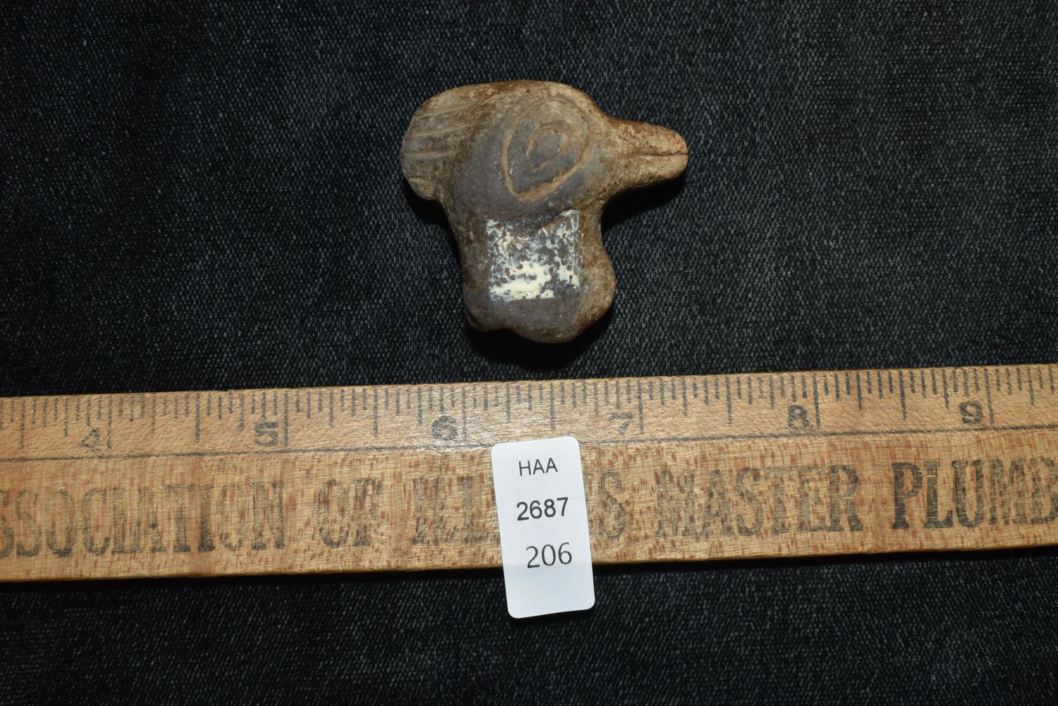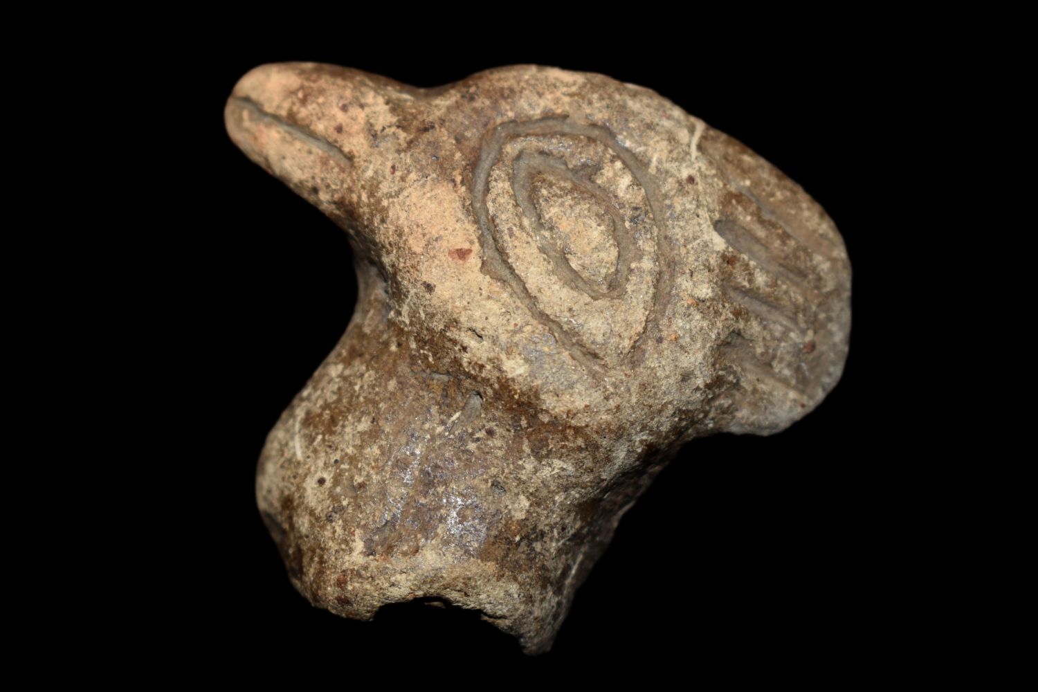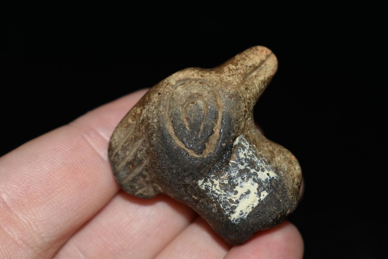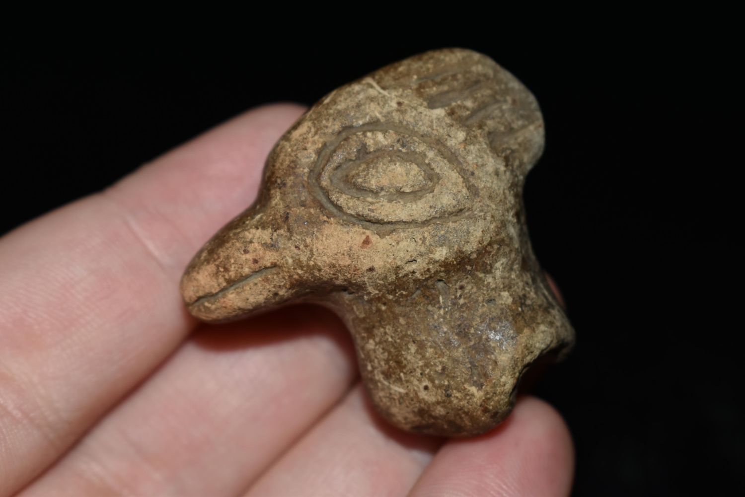 1 3/8" Pottery Rim Rider Duck Head, Found in Southern Illinois, Ex Vanderver & Nick Gatses, Native American Artifacts
