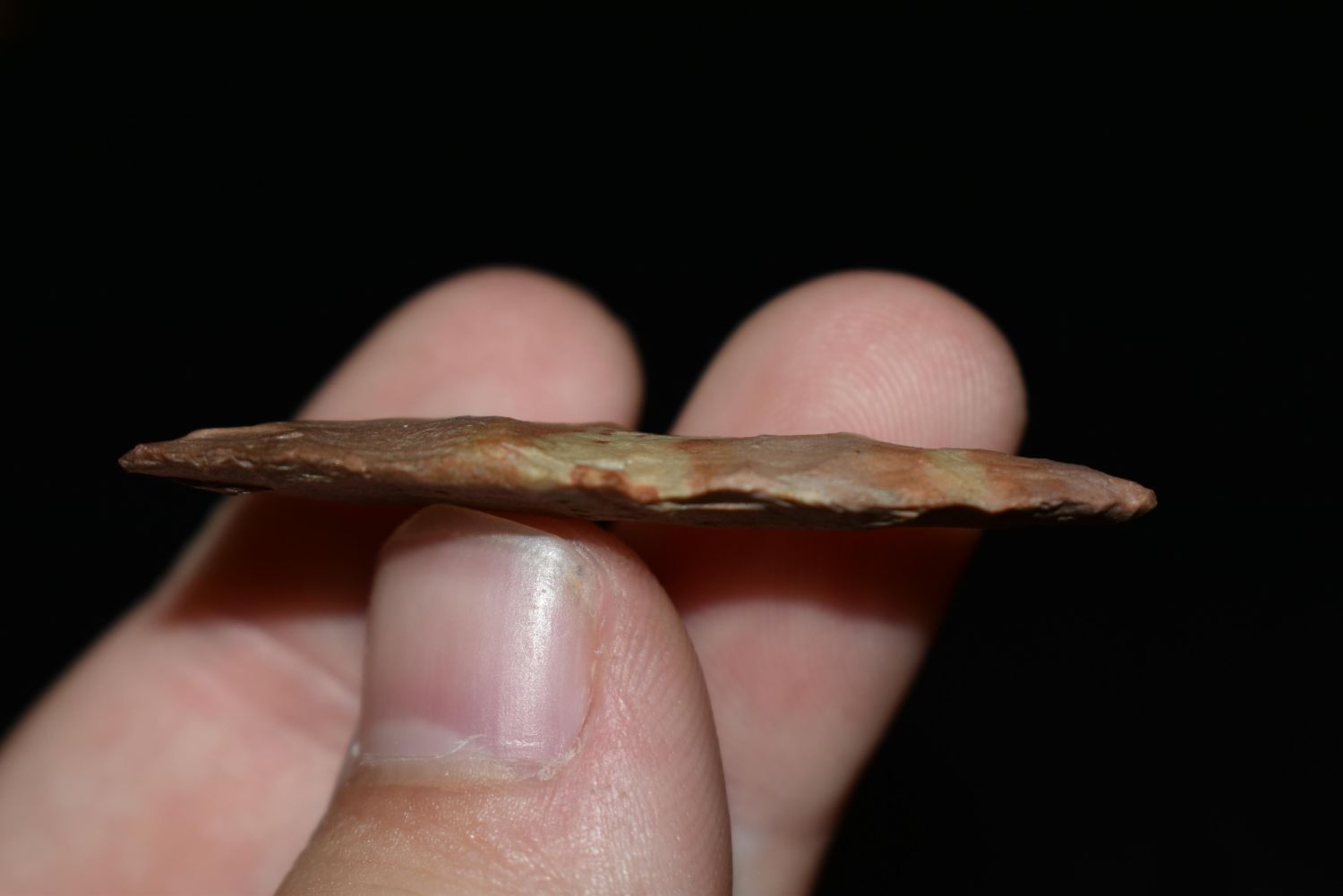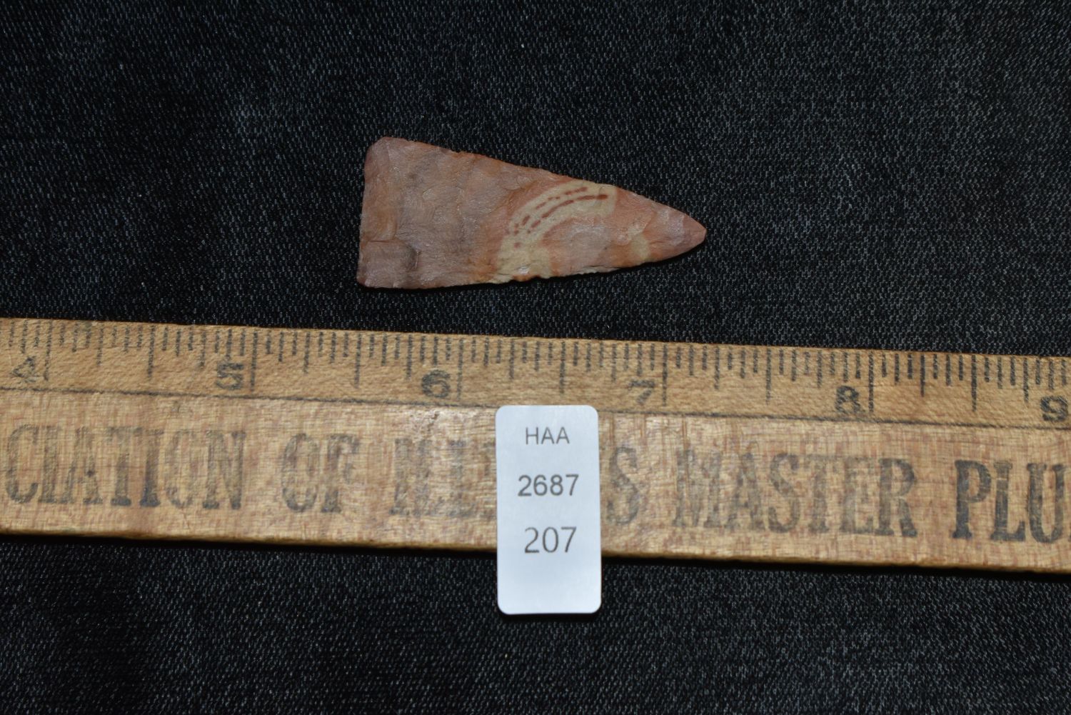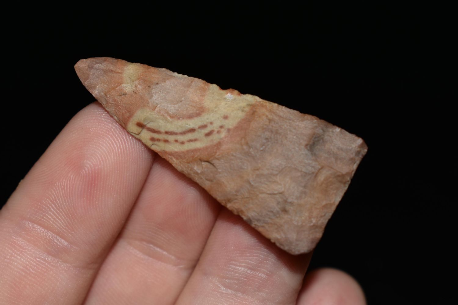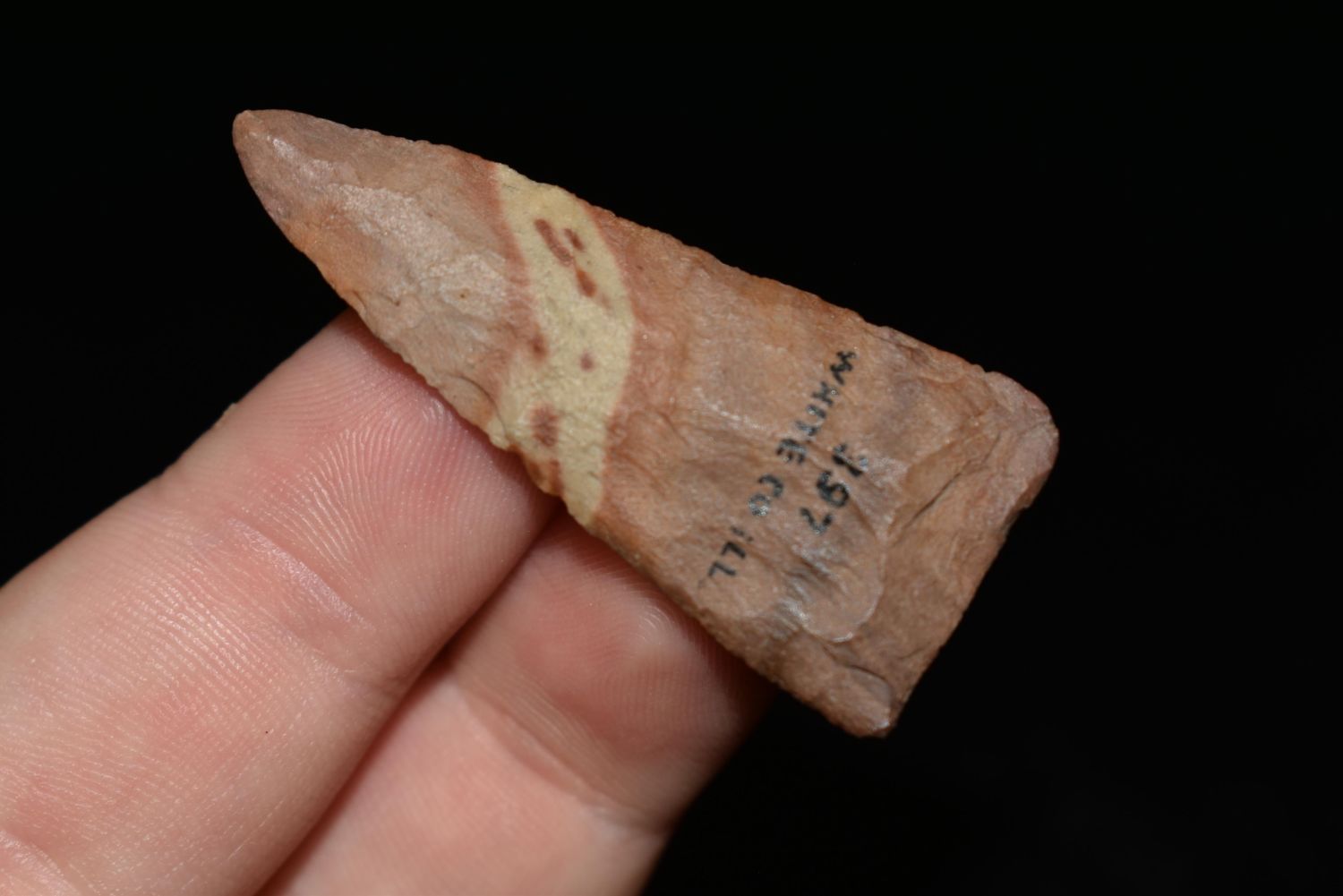 1 3/4" Madison Triangle Found in White Co. Illinois, Made of Buffalo River Chert, Ex Nick Gatses & Vanderver, Native American Artifacts