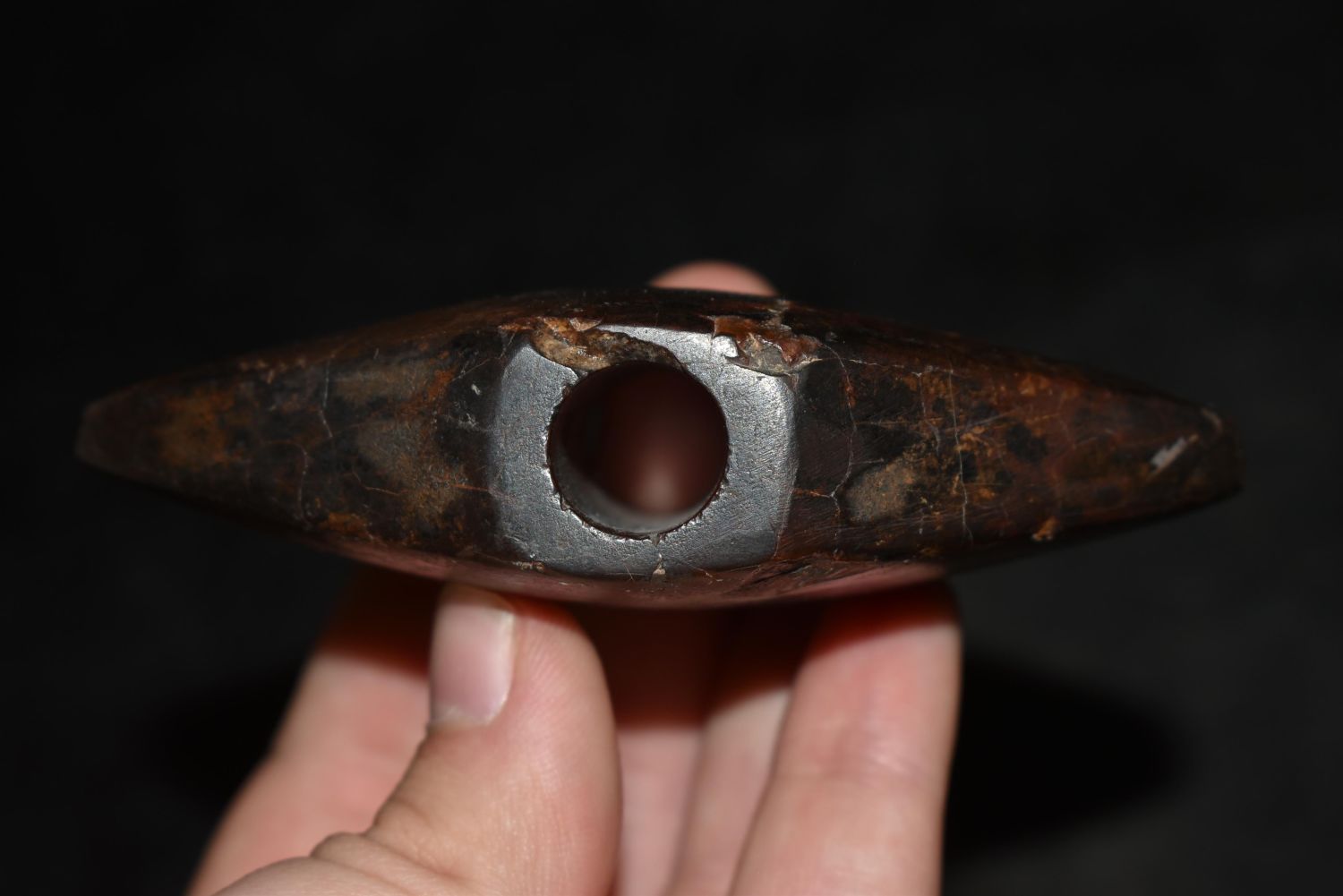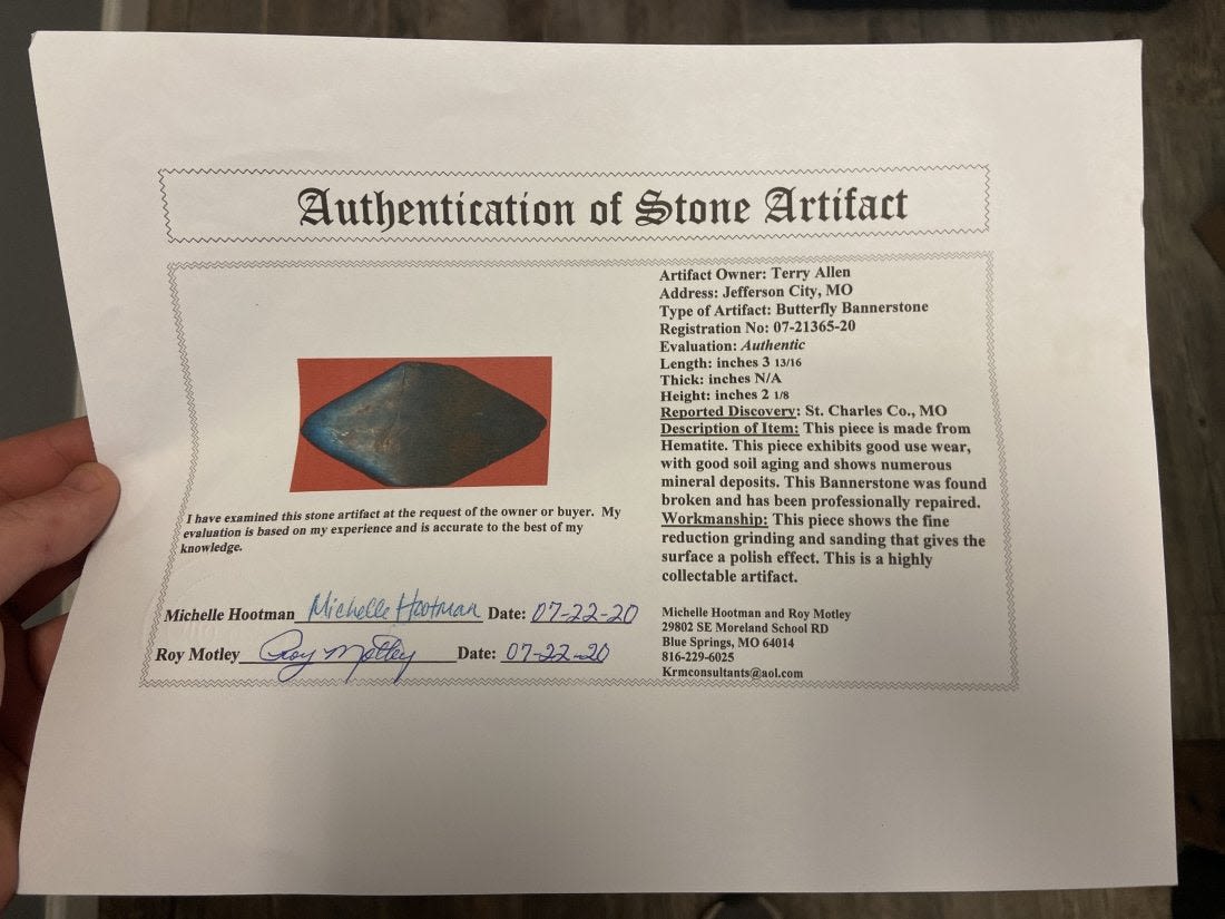 3 3/16" Hematite Bannerstone, Motley COA, Found in St. Charles Co. MO, Native American Artifacts