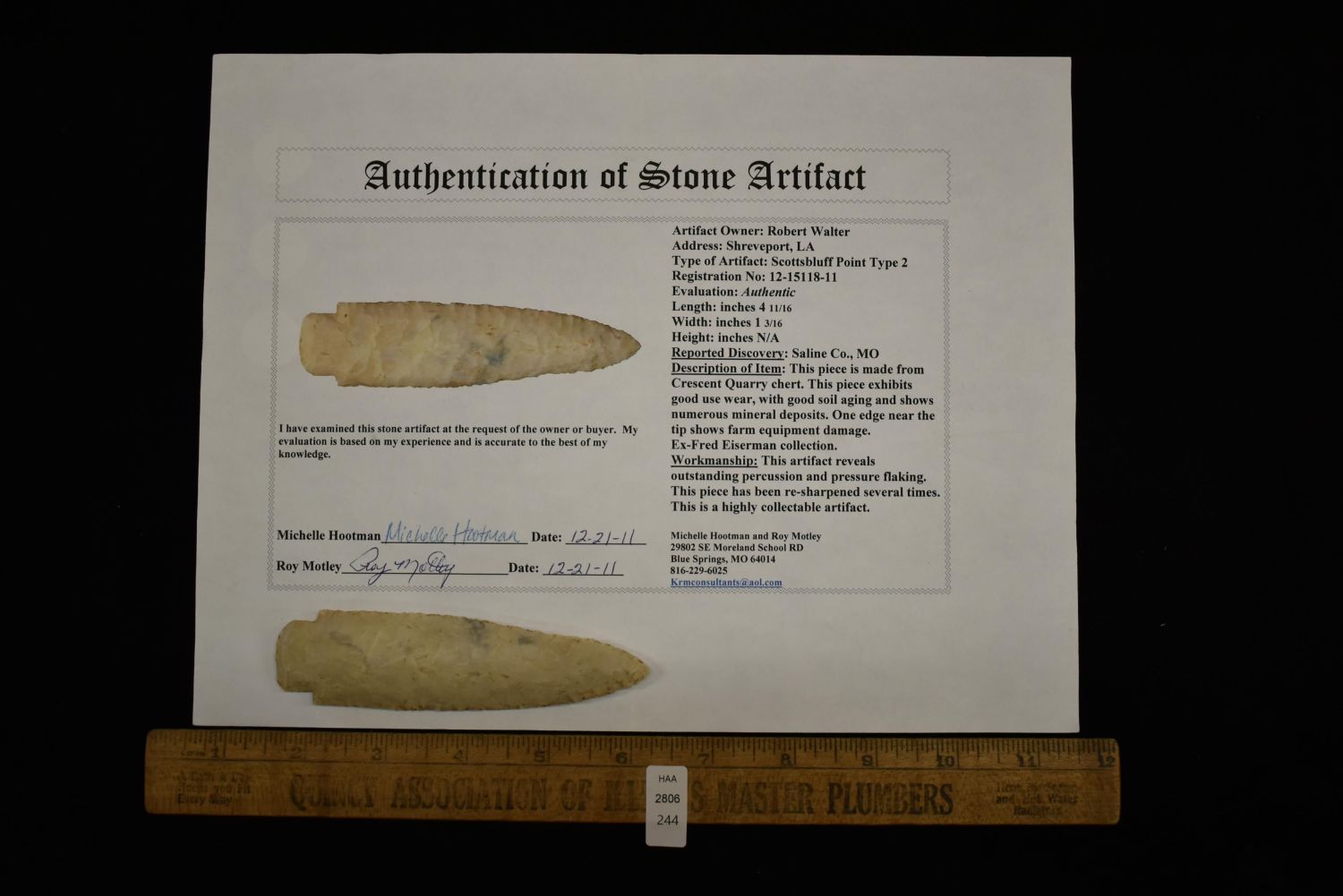 4 11/16" Type 2 Scottsbluff, Motley COA, Saline Co. MO, Native American Artifacts