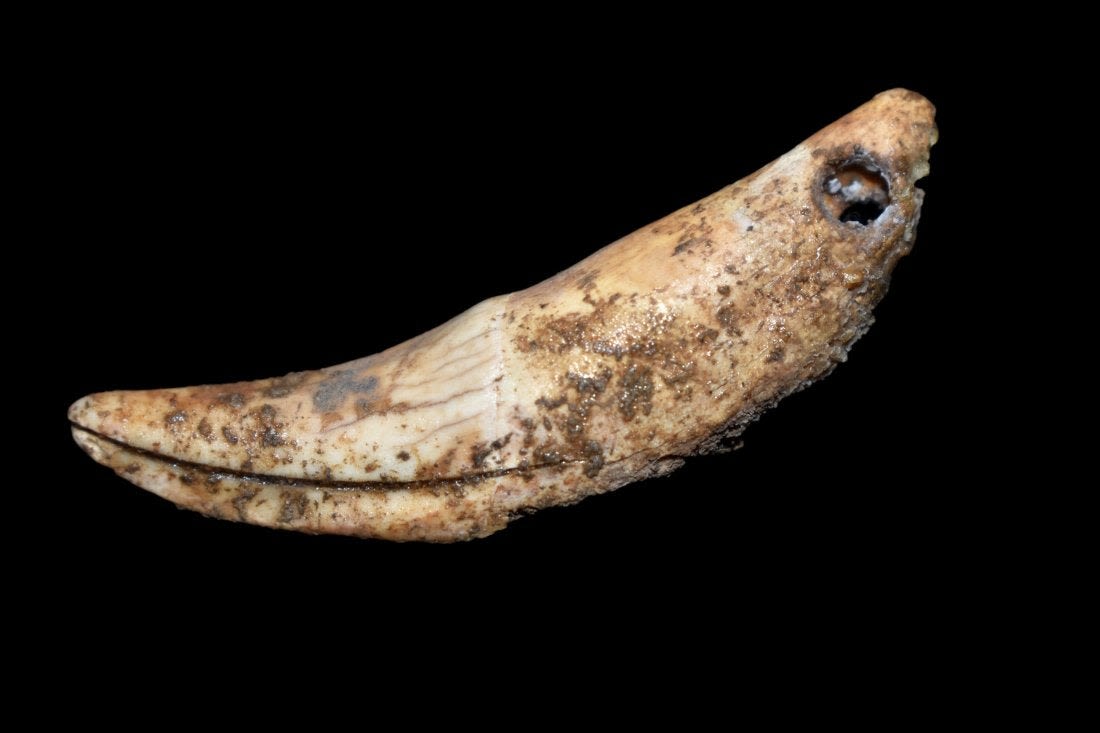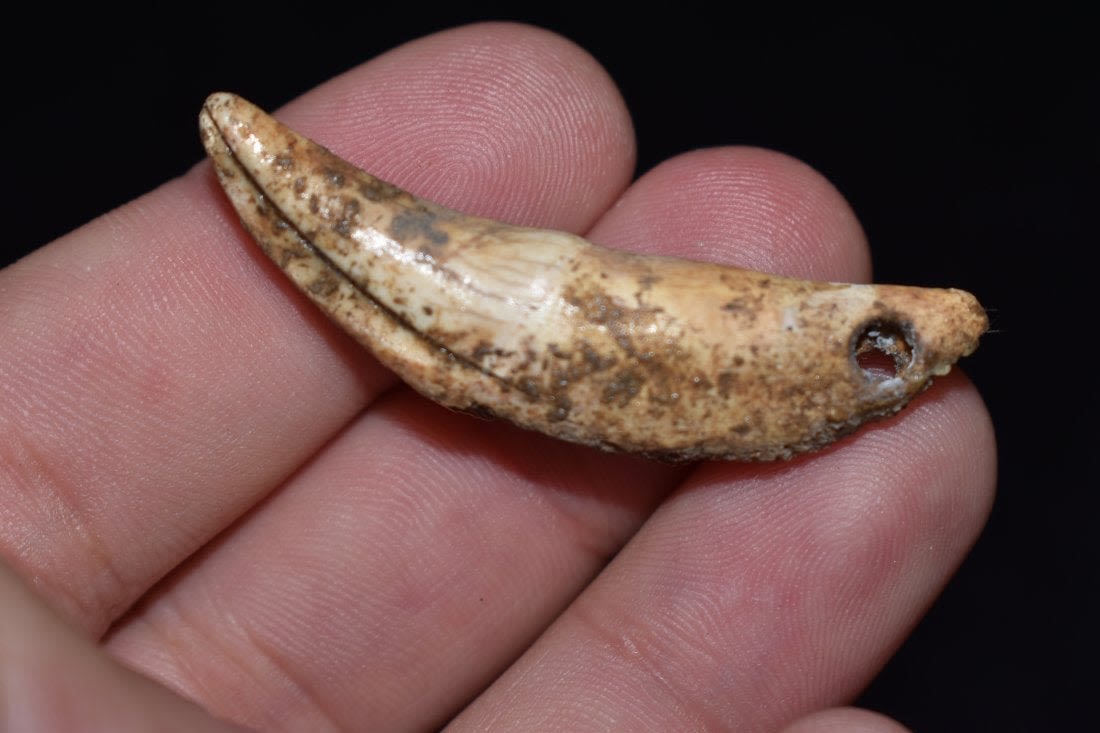 1 3/4" Drilled Bear tooth Pendant, Native American Artifacts