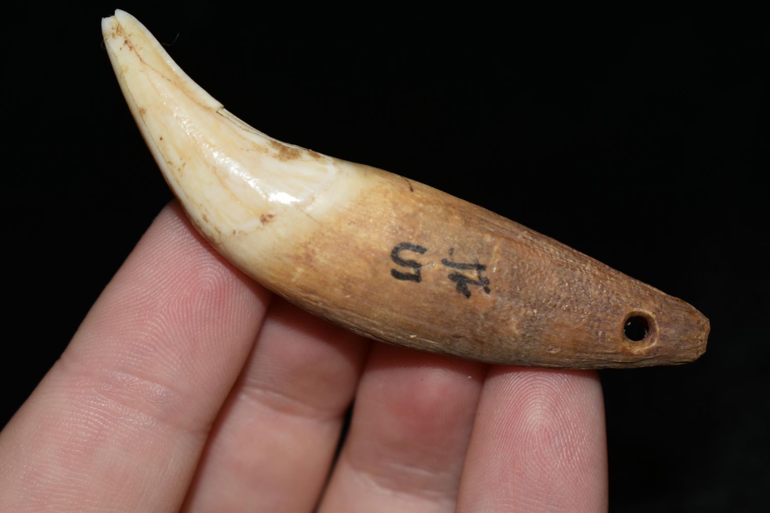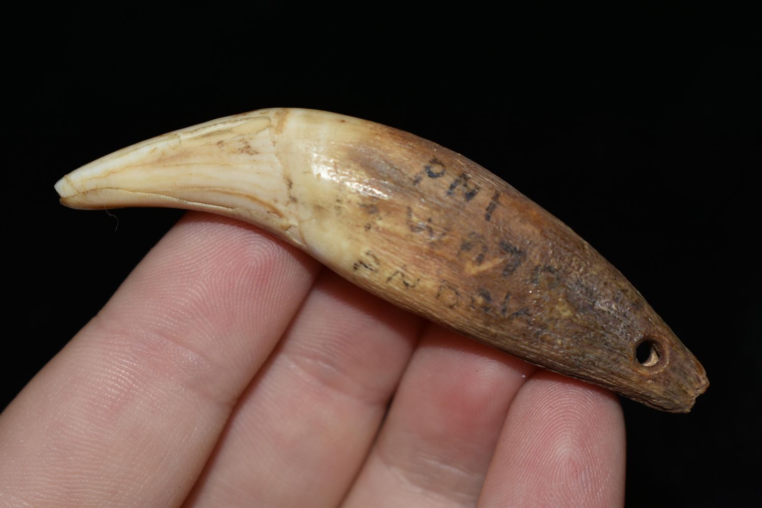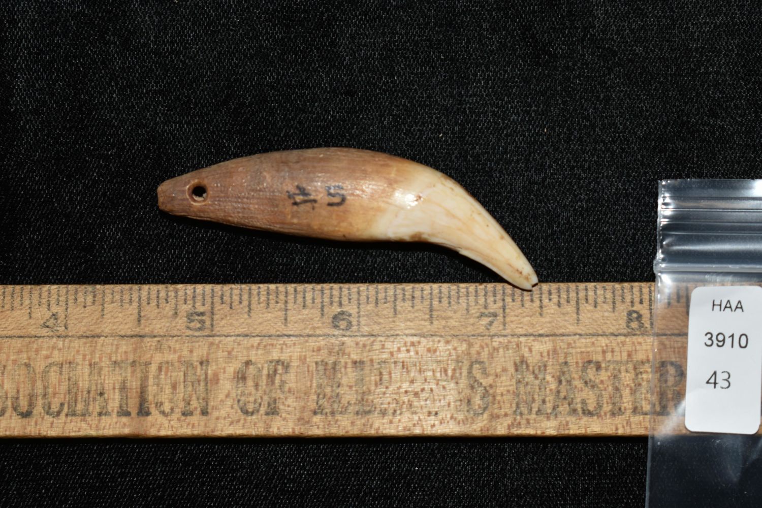 2 3/4" Drilled Bear Tooth Pendant, Native American Artifacts