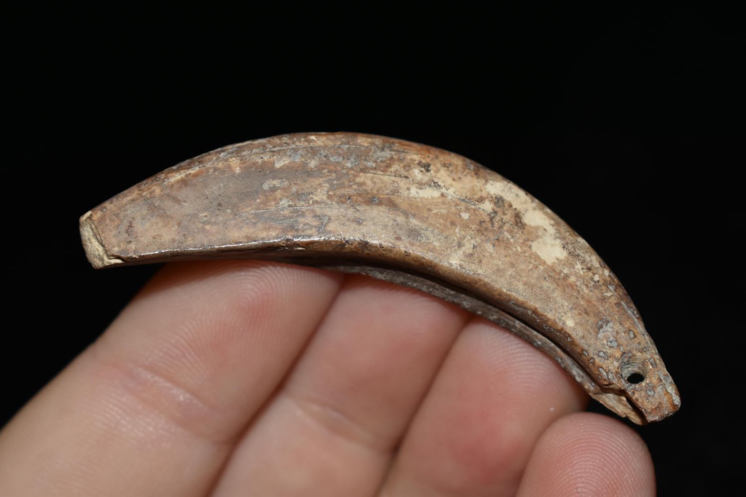 2 1/4" Drilled Bear Tooth Pendant, Native American Artifacts