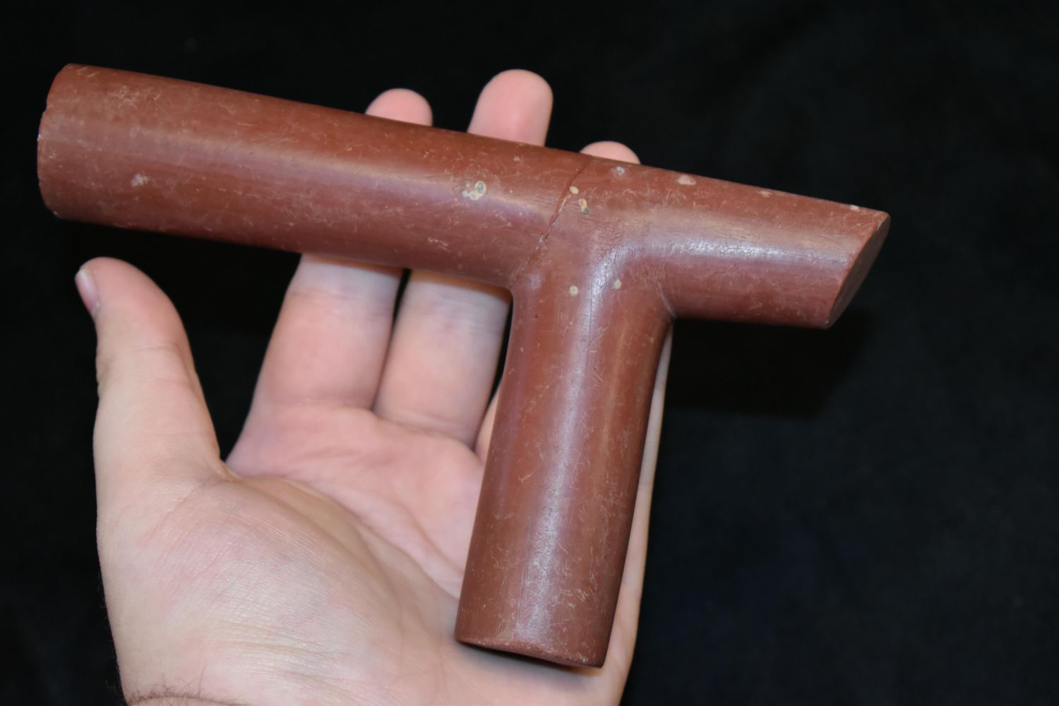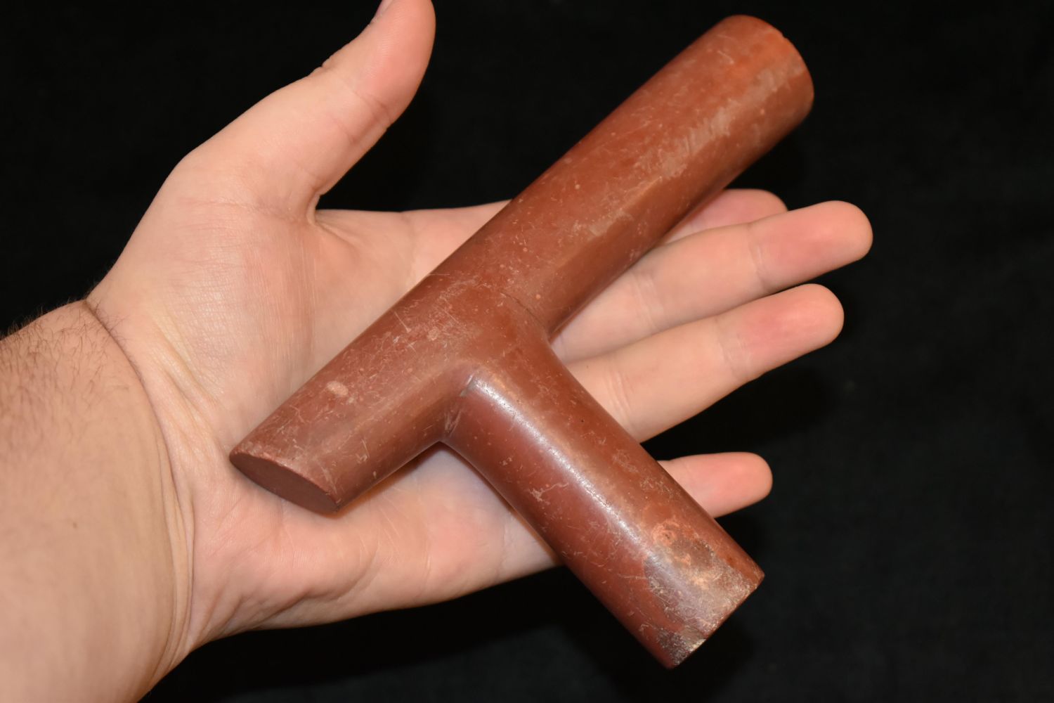 6 1/2" Catlinite Historic Pipe, Stem Broken and Reglued at Bowl, Native American Artifacts