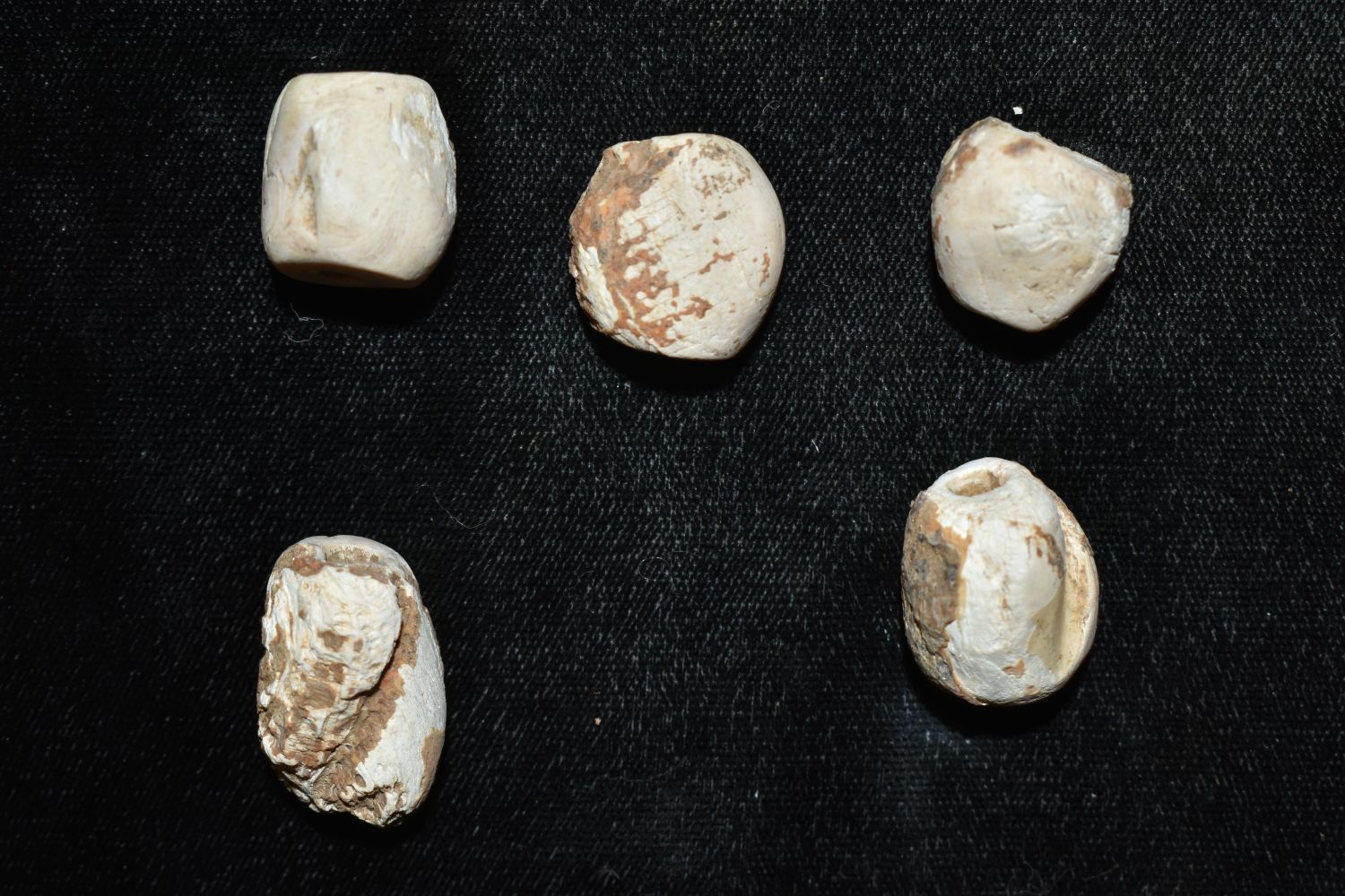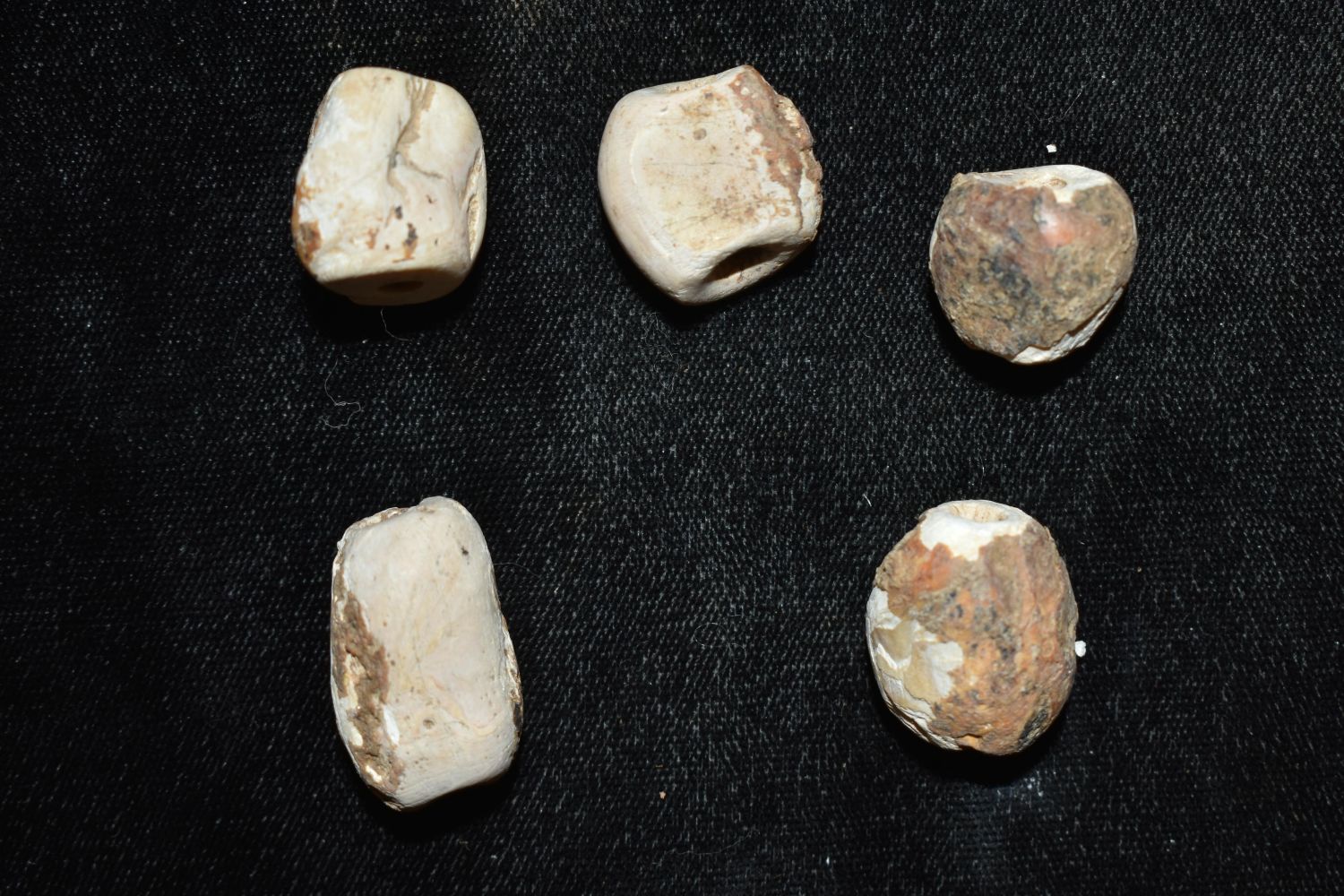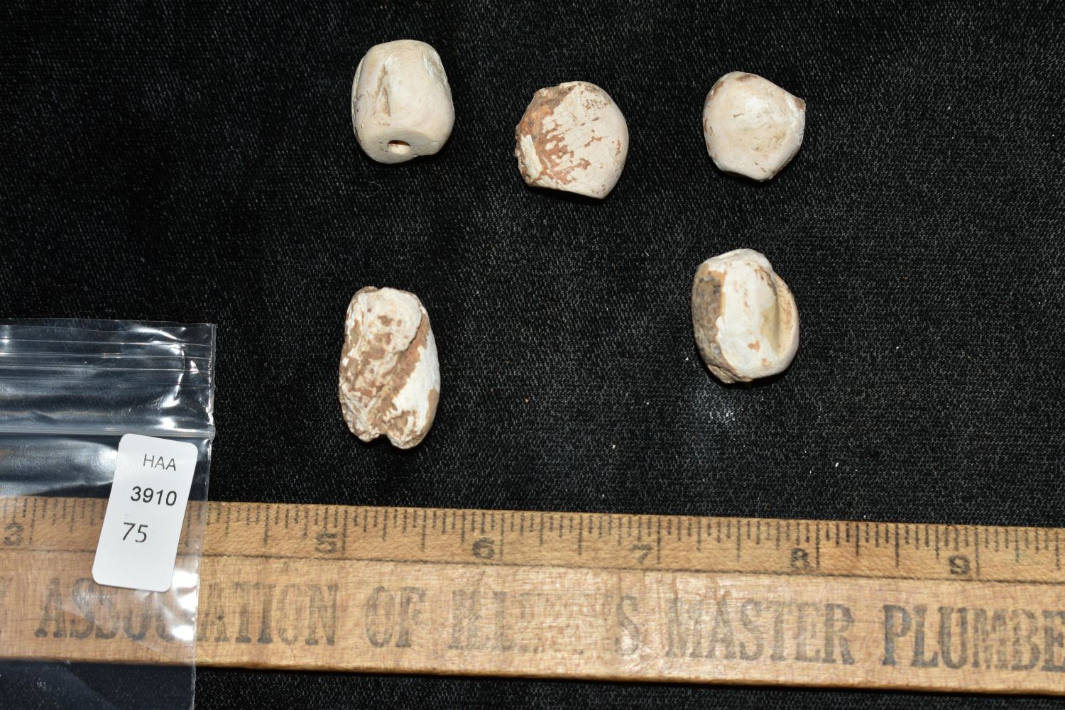 Lot of 5 Shell Beads, Heavily Patinated, Found by Dennis T. Daniel in Eastern North Carolina during the construction of Highway 264 Native American Artifacts