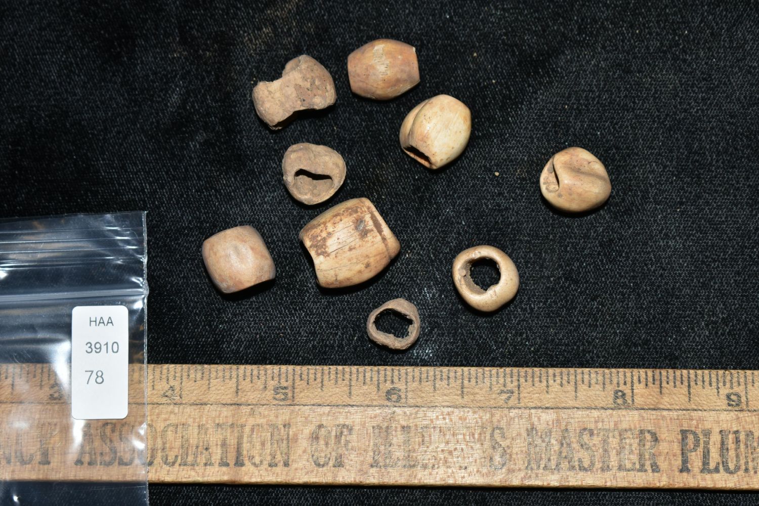Lot of 10 Bone Barrel Beads, Heavily Patinated, Found by Dennis T. Daniel in Eastern North Carolina during the construction of Highway 264 Native American Artifacts