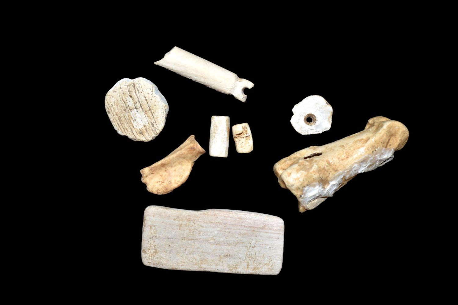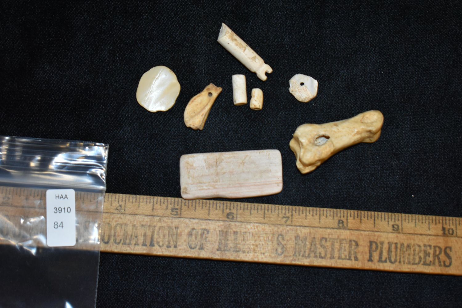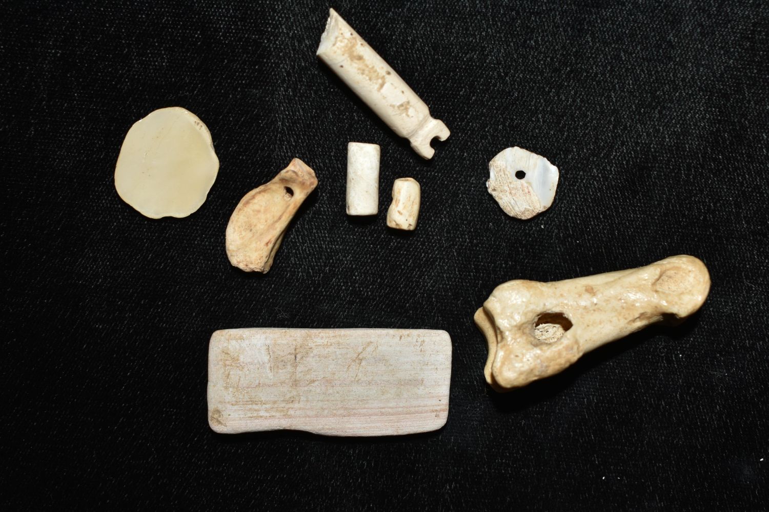 Lot of 8 Bone/Shell Artifacts, Found by Dennis T. Daniel in Eastern North Carolina during the construction of Highway 264 Native American Artifacts