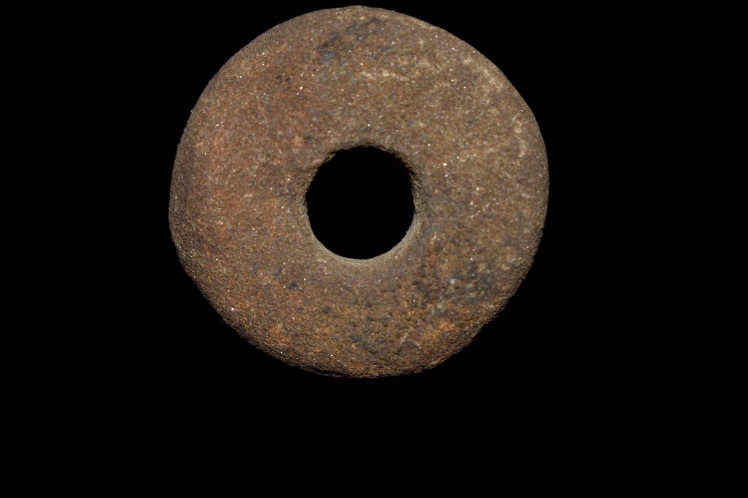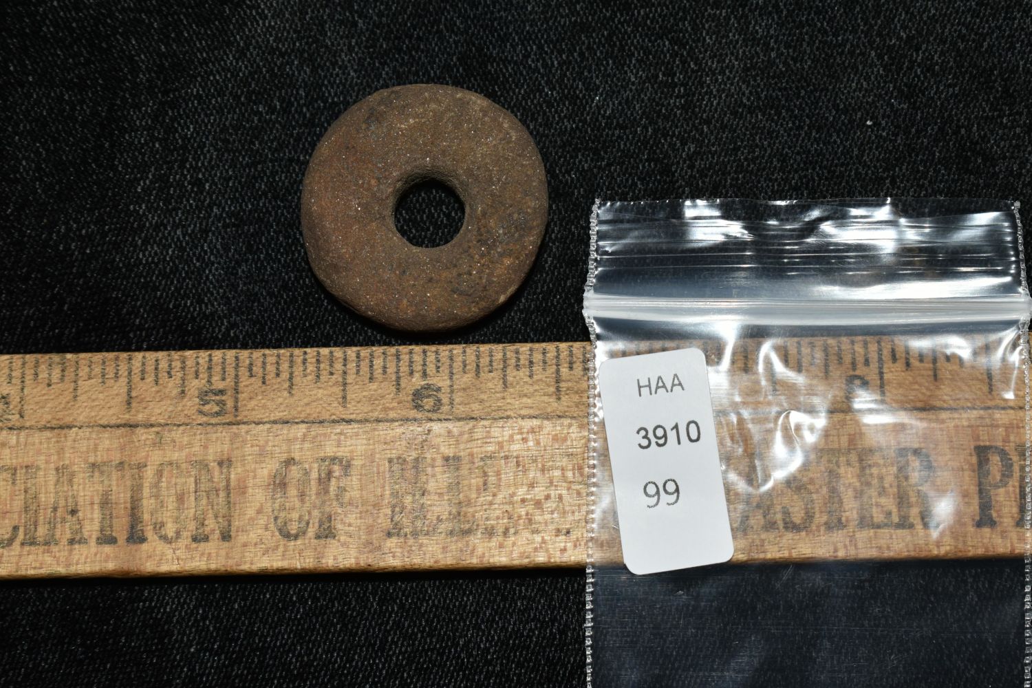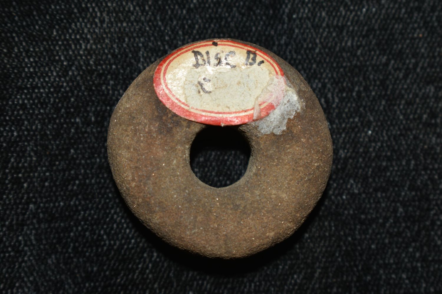 1 1/8" Perforated Sandstone Discoidal, Found by Dennis T. Daniel in Eastern North Carolina during the construction of Highway 264 Native American Artifacts