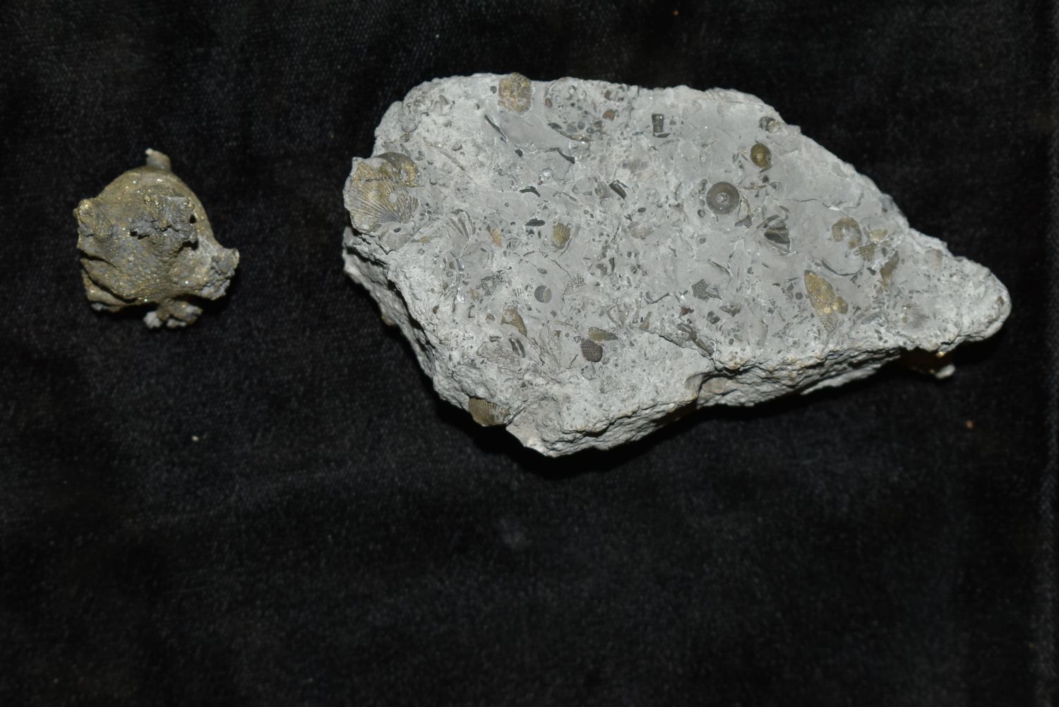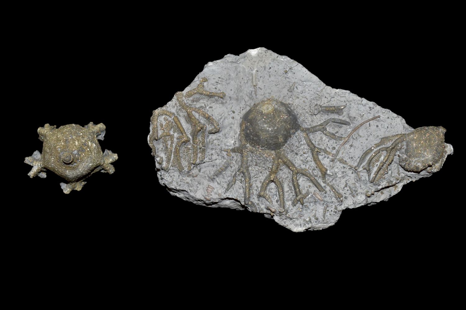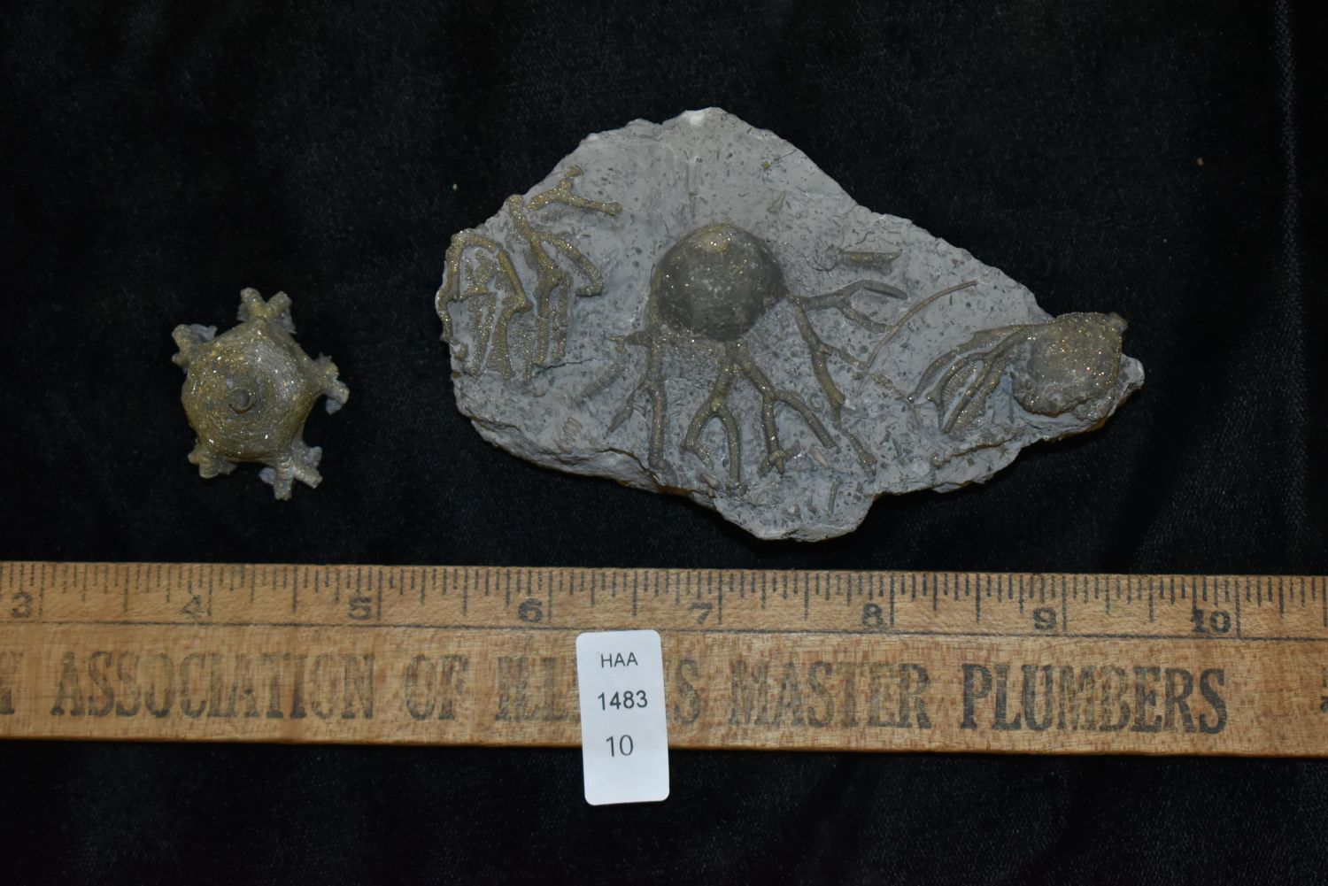 Pyritized crinoid Calyx and Misc Associated fossils, Anthroacantha carpenteri, Silica Shale Frm, Middle Devonian, Lucas Co, OH 4"