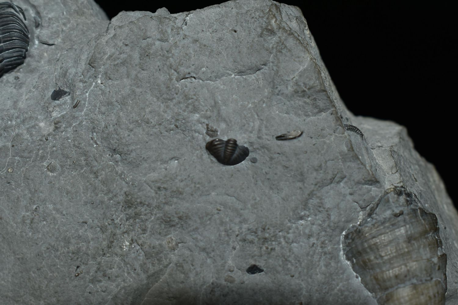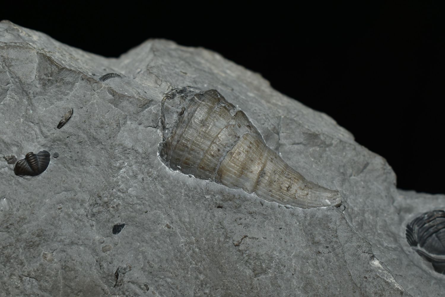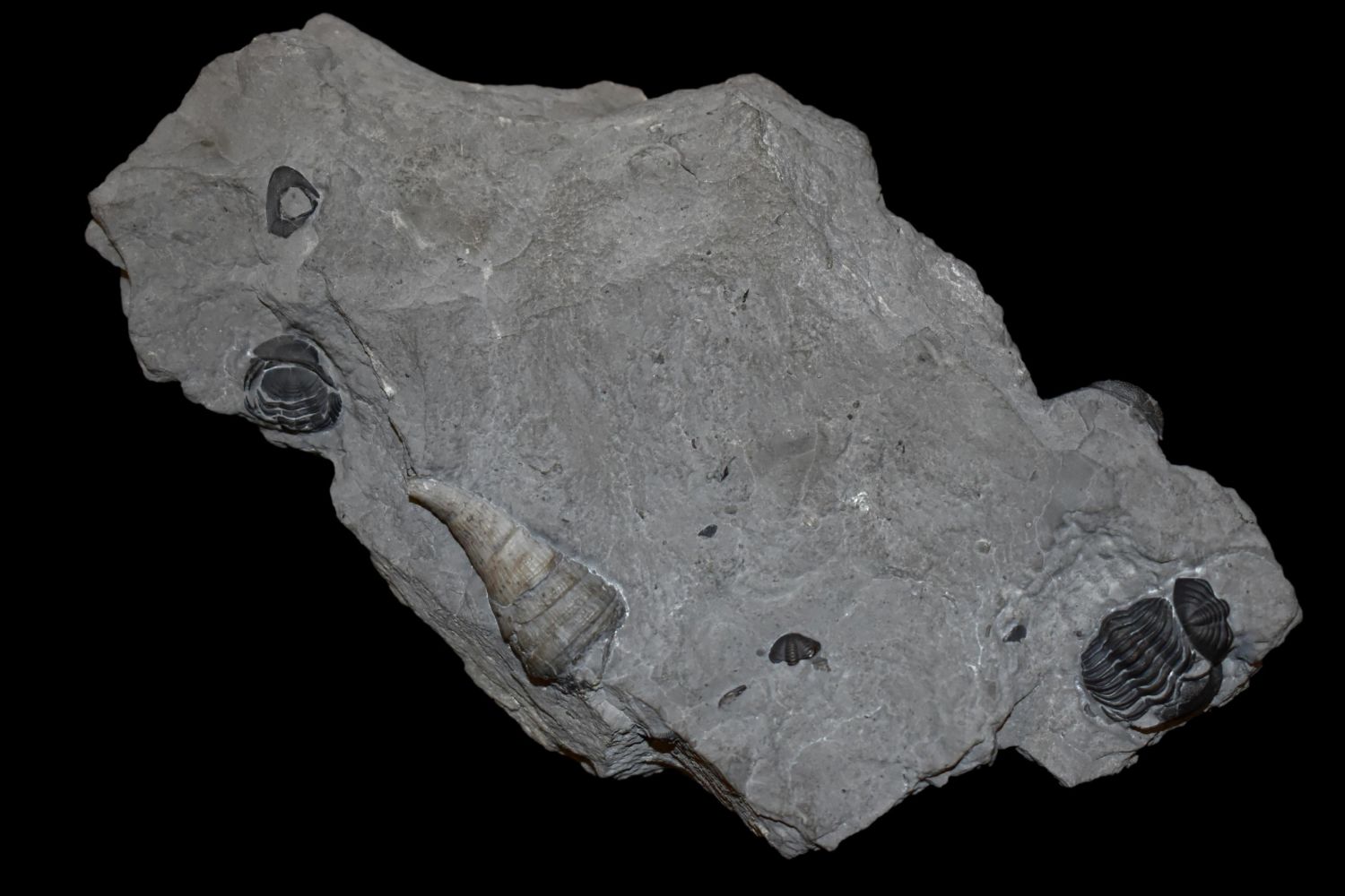 Trilobite, phacops rana with horn coral, Windom Shale, Middle Devonian, Penn Dixie, Hamburg, NY