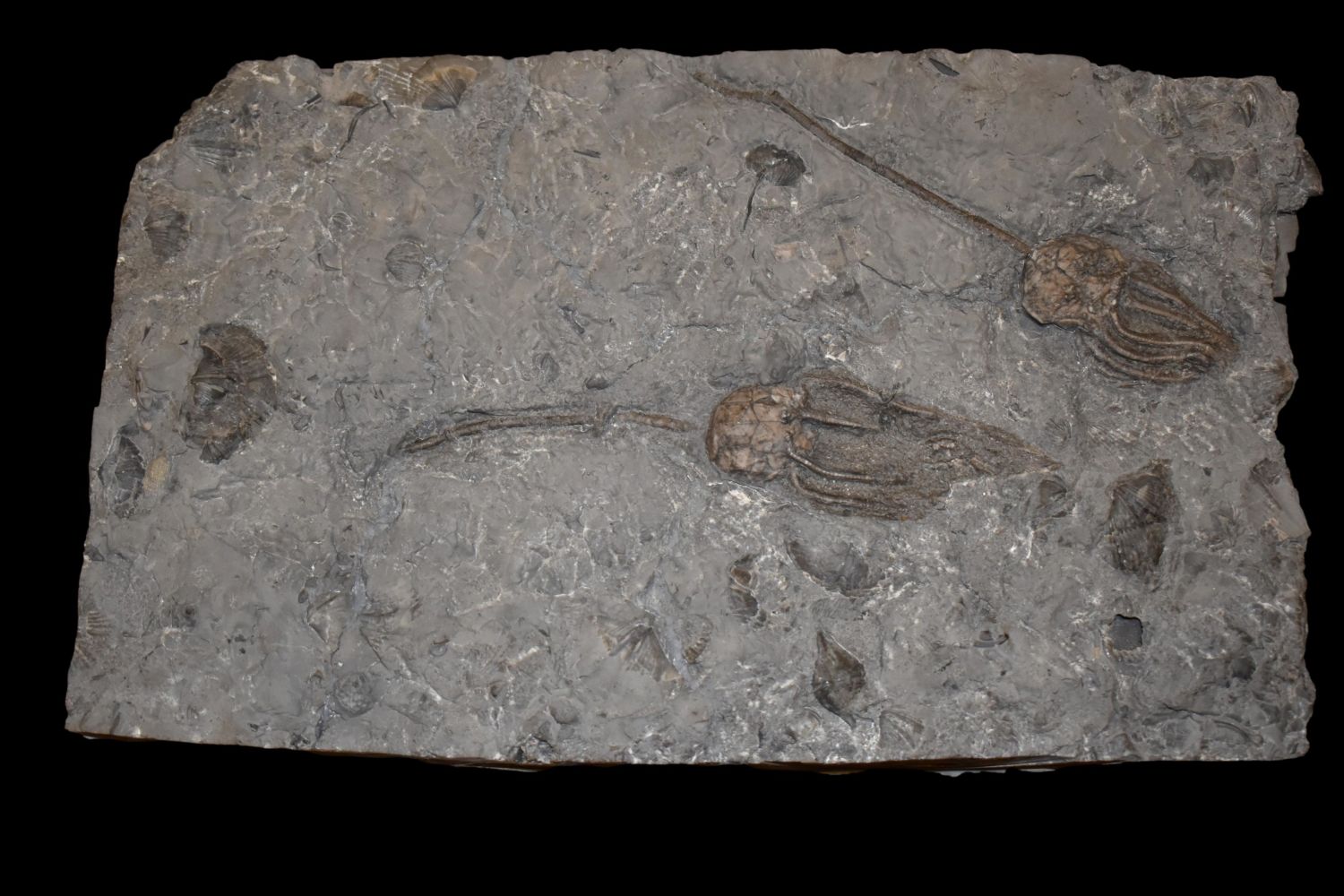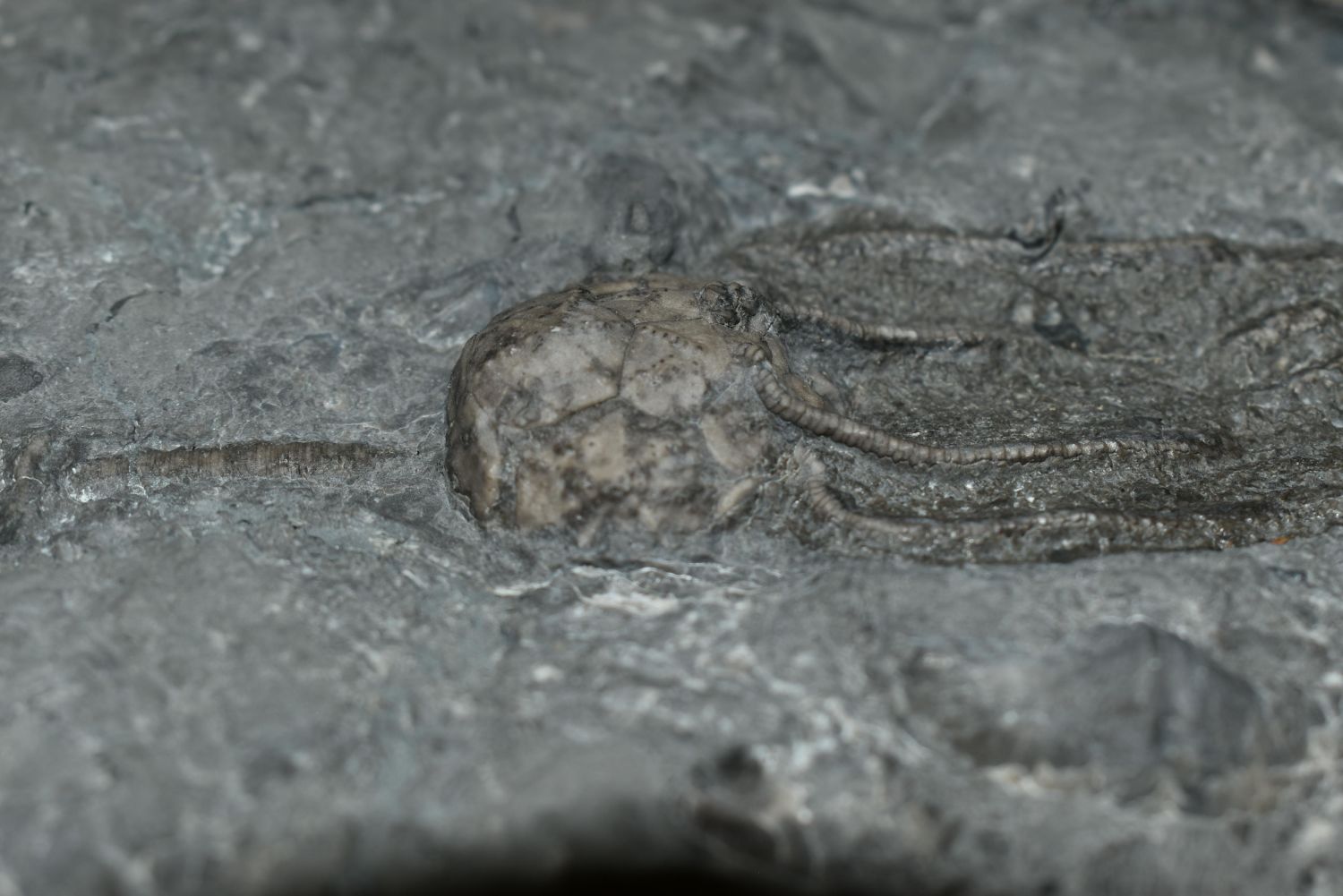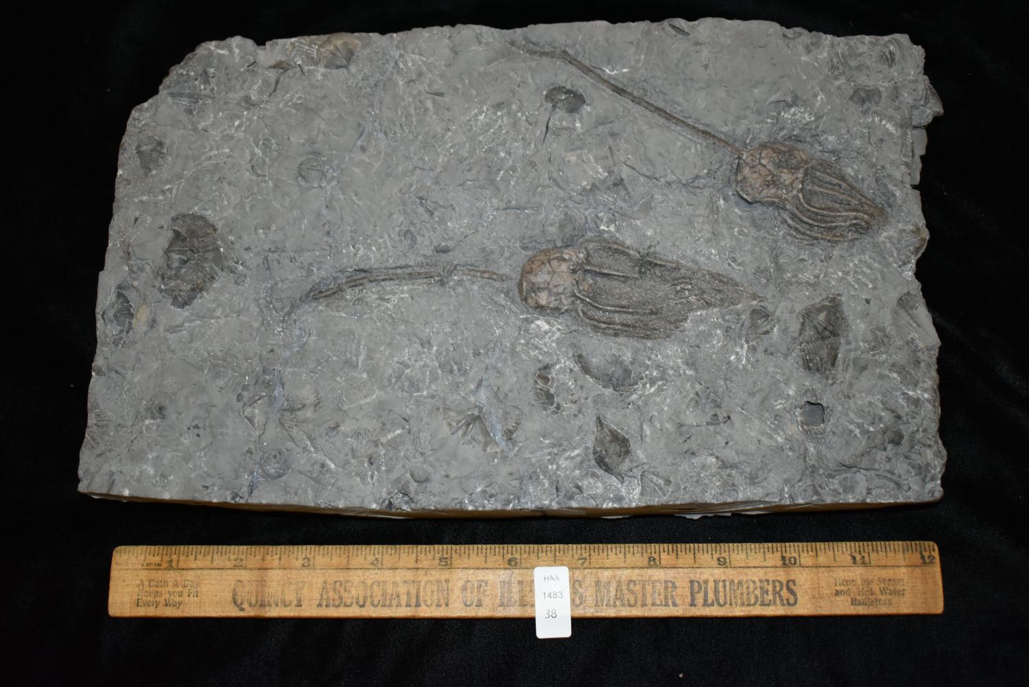 Crinoid, Caryocrinites Ornatus, Rochester Shale, Lewiston member, upper beds w/Striispirifer niagarensis shell parement, Silurian, Wenlock stage, Caleb Quarry, Middleport, NY 12"