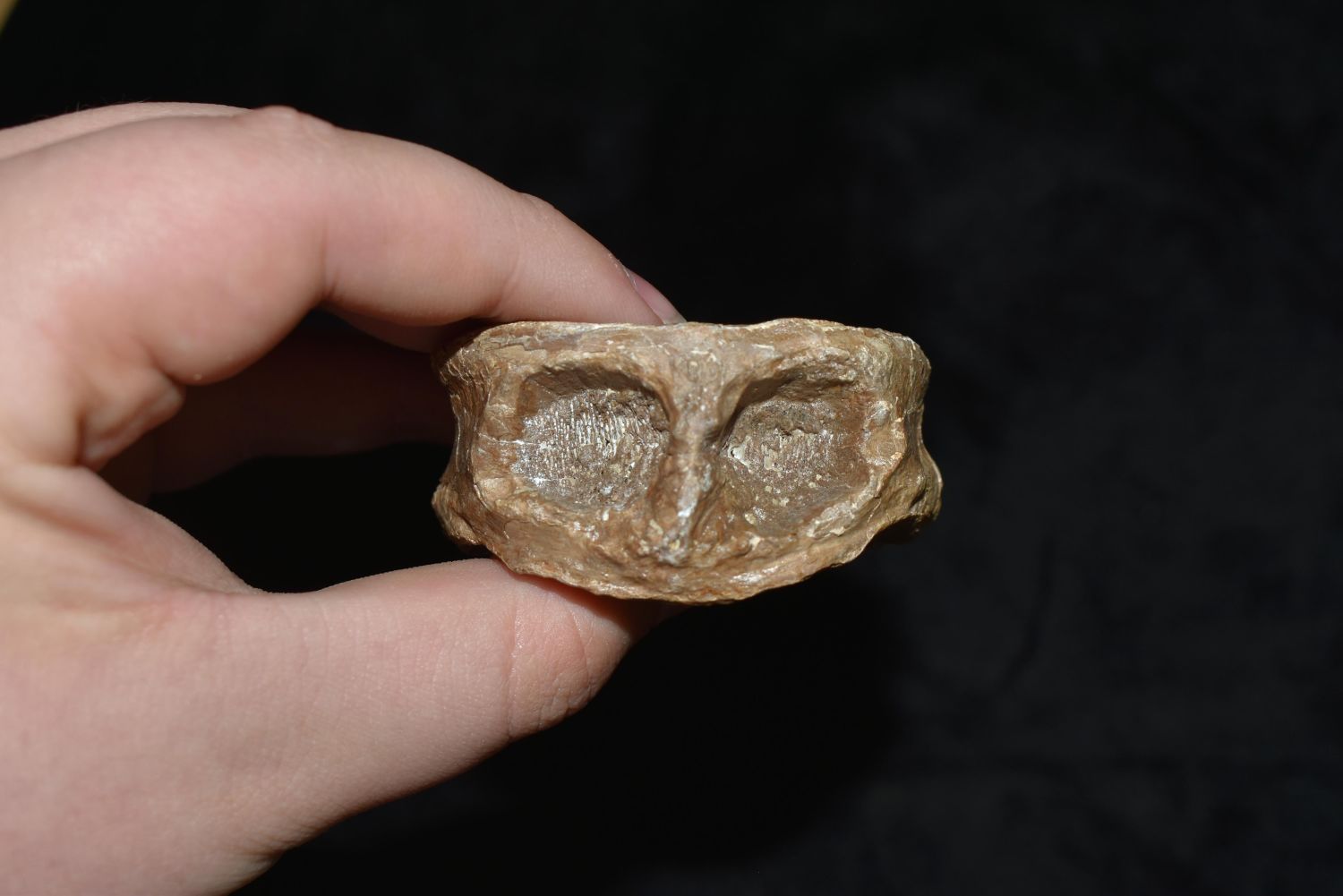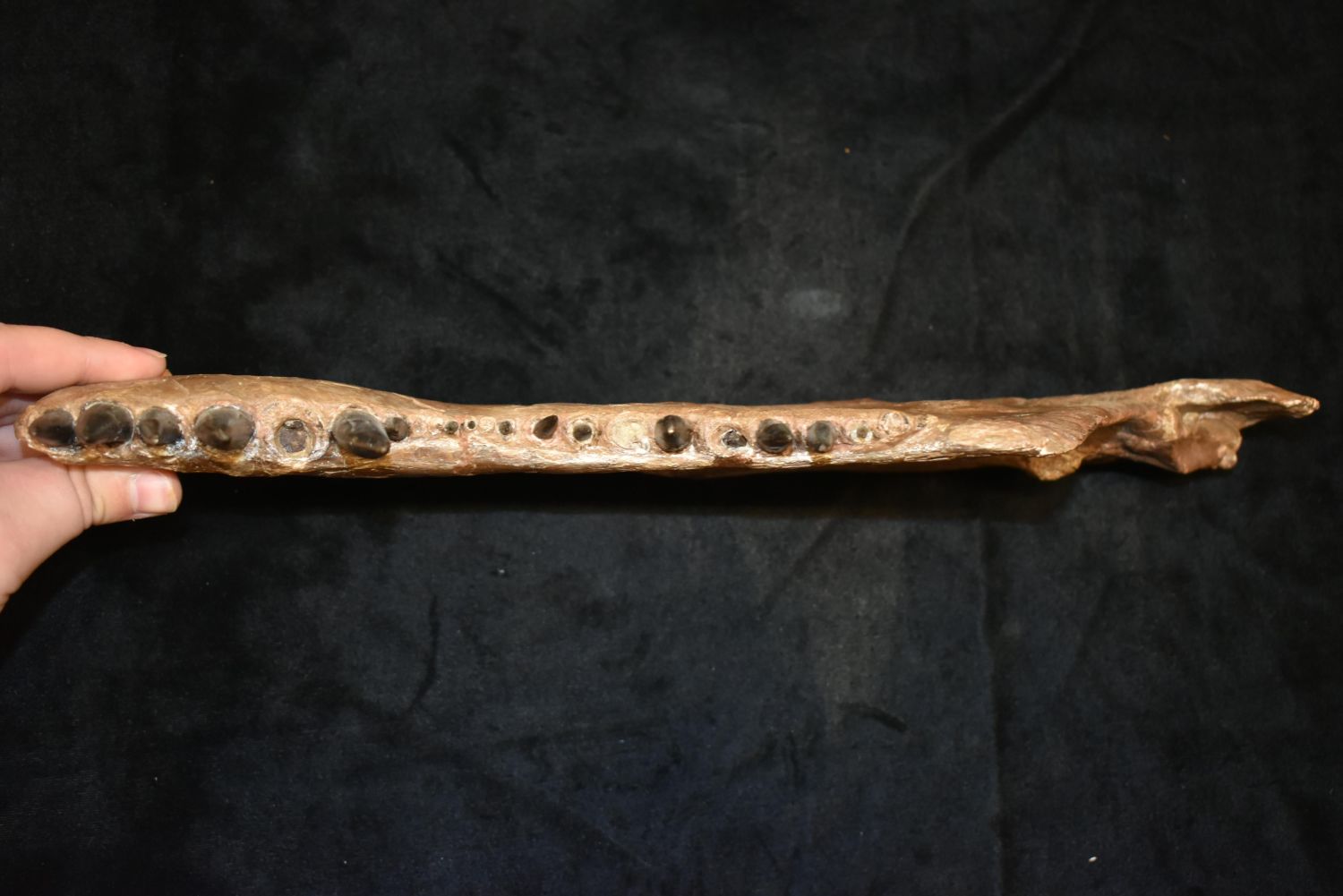 Xiphactinus audax, Lower jaw & Vert., 14 1/2" Cretaceous, 65 MYA, Niobrara Chalk, Gove Co, KS, Found in the 1970s. Super teeth