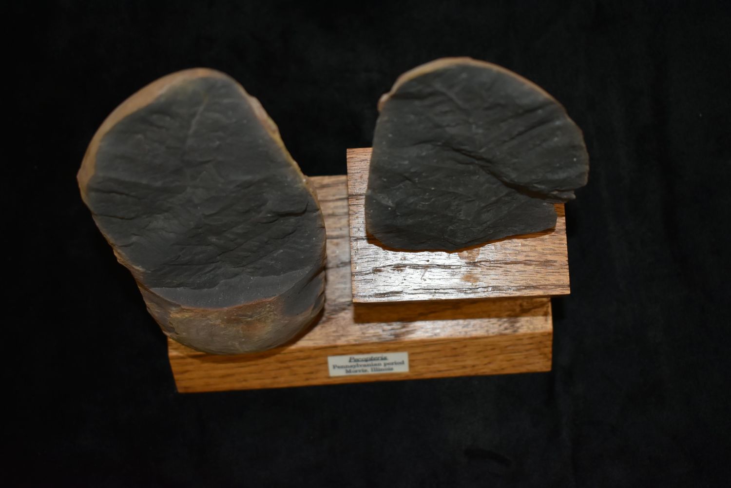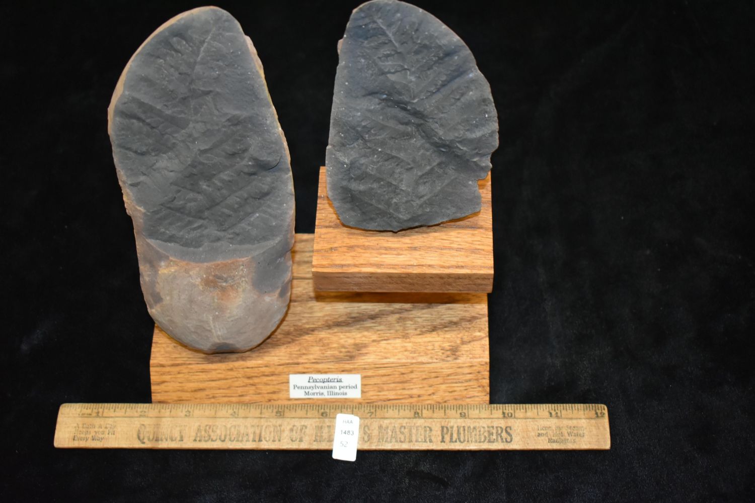 Mazon Creek Nodule, Pecopteris oreopteridia and crystalized wood, great leaves, large, over 8", Morris IL, USA Nicely displayed