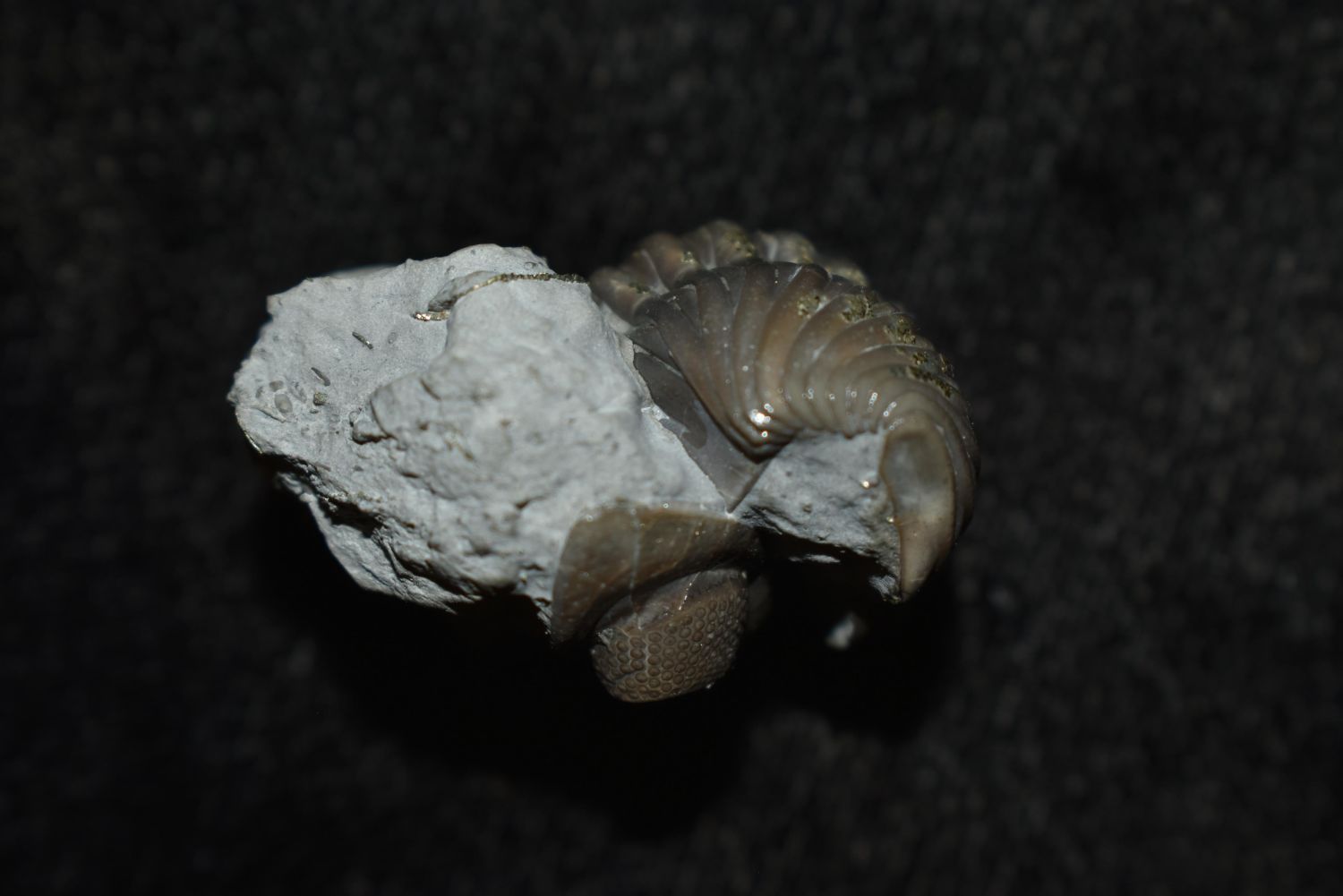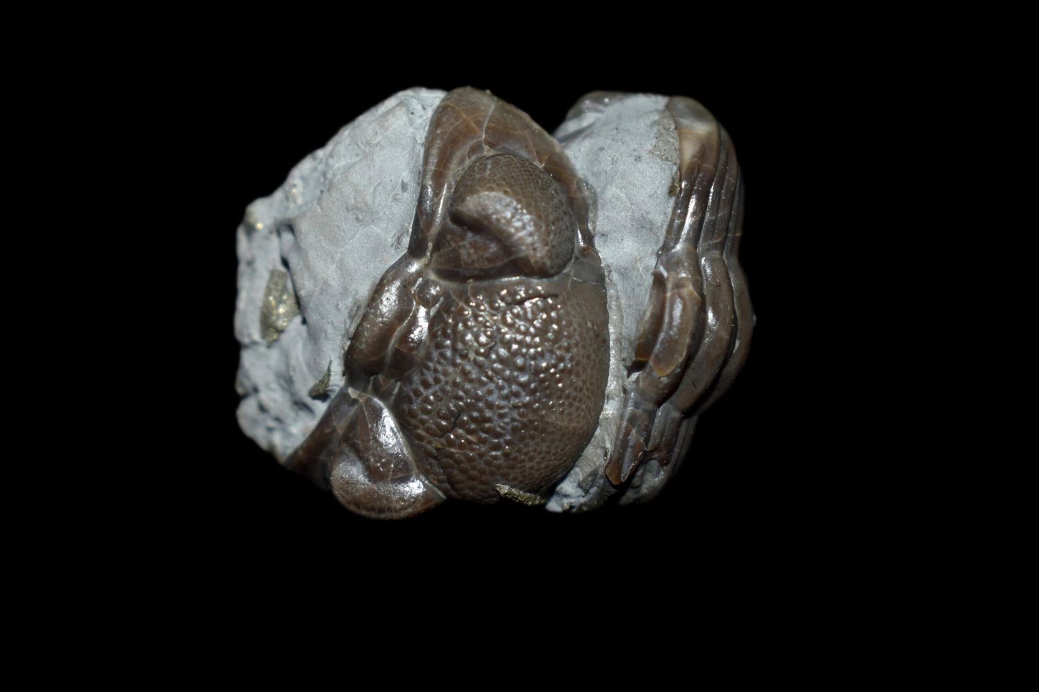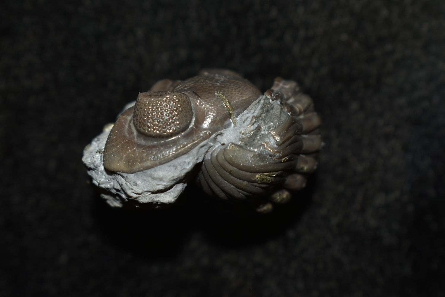 Enrolled Eldredgeops (Phacops) rana Trilobite Fossil, Mt Orab, OH Matrix and specimen 1 1/4" x 1 1/4" Partially pyritized