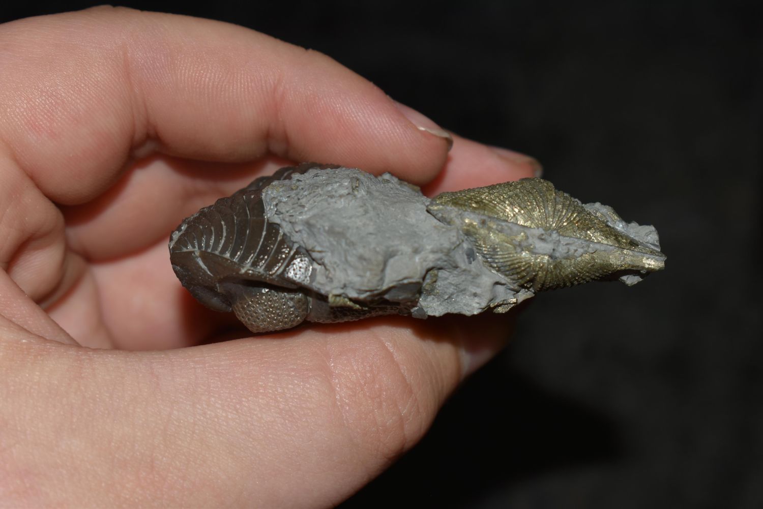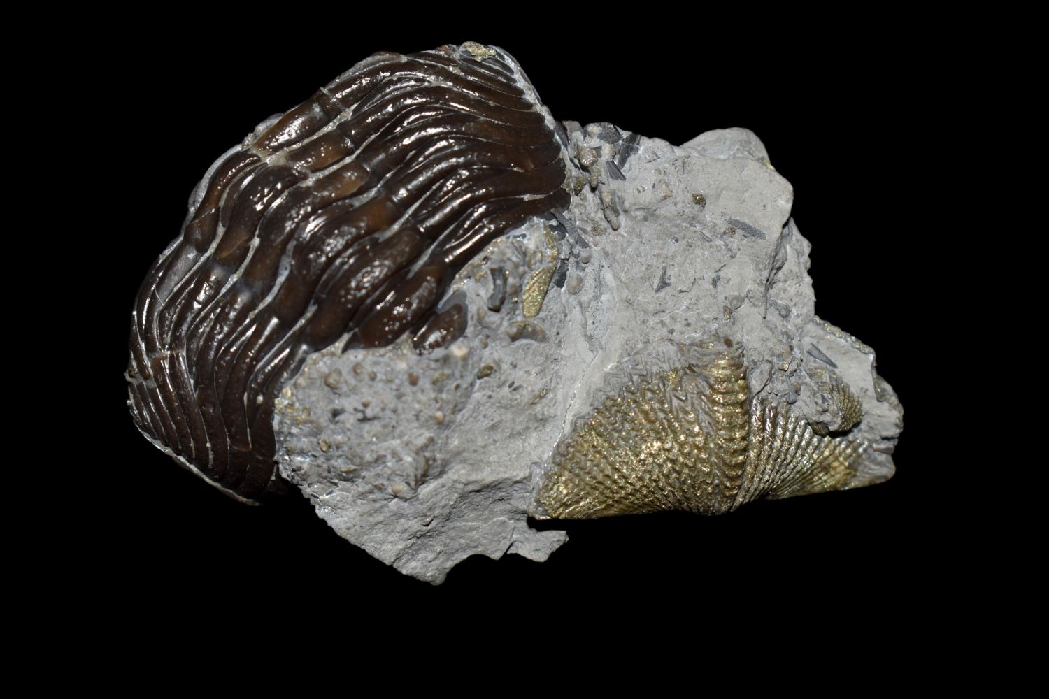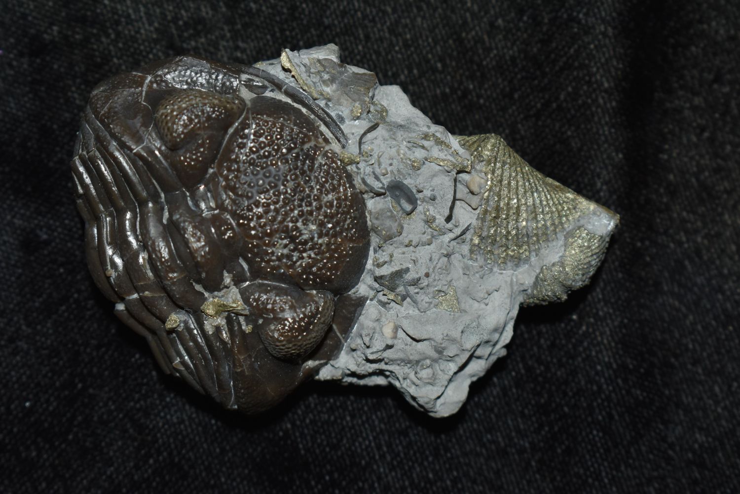 Eldredeaops (Phacops) rana Trilobite Fossil. Mt Orab, OH Matrix and specimen 2 1/2" x 1 5/8" Partially Pyritized