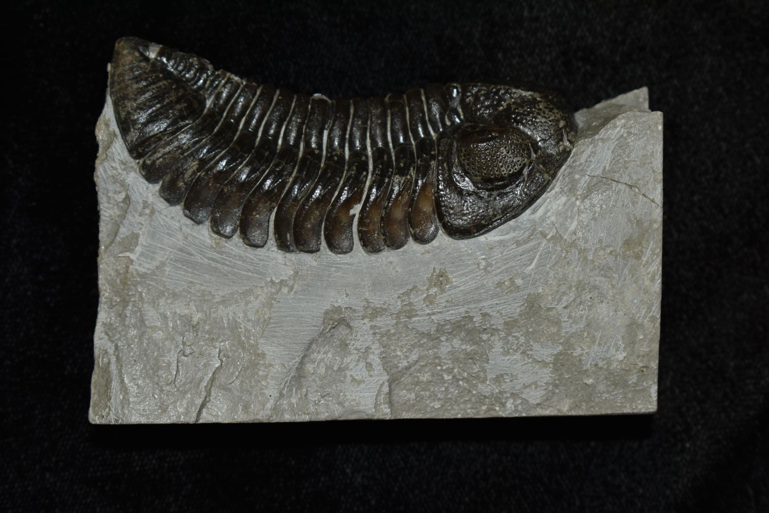 Eldredeaops (Phacops) rana Trilobite Fossil. Mt Orab, OH Matrix and specimen 3 1/8" x 2 1/8"