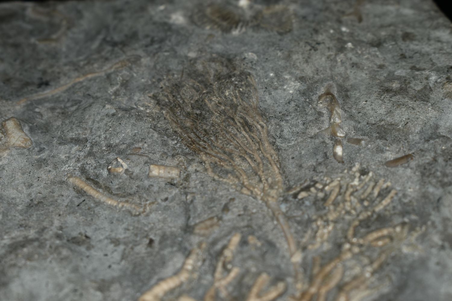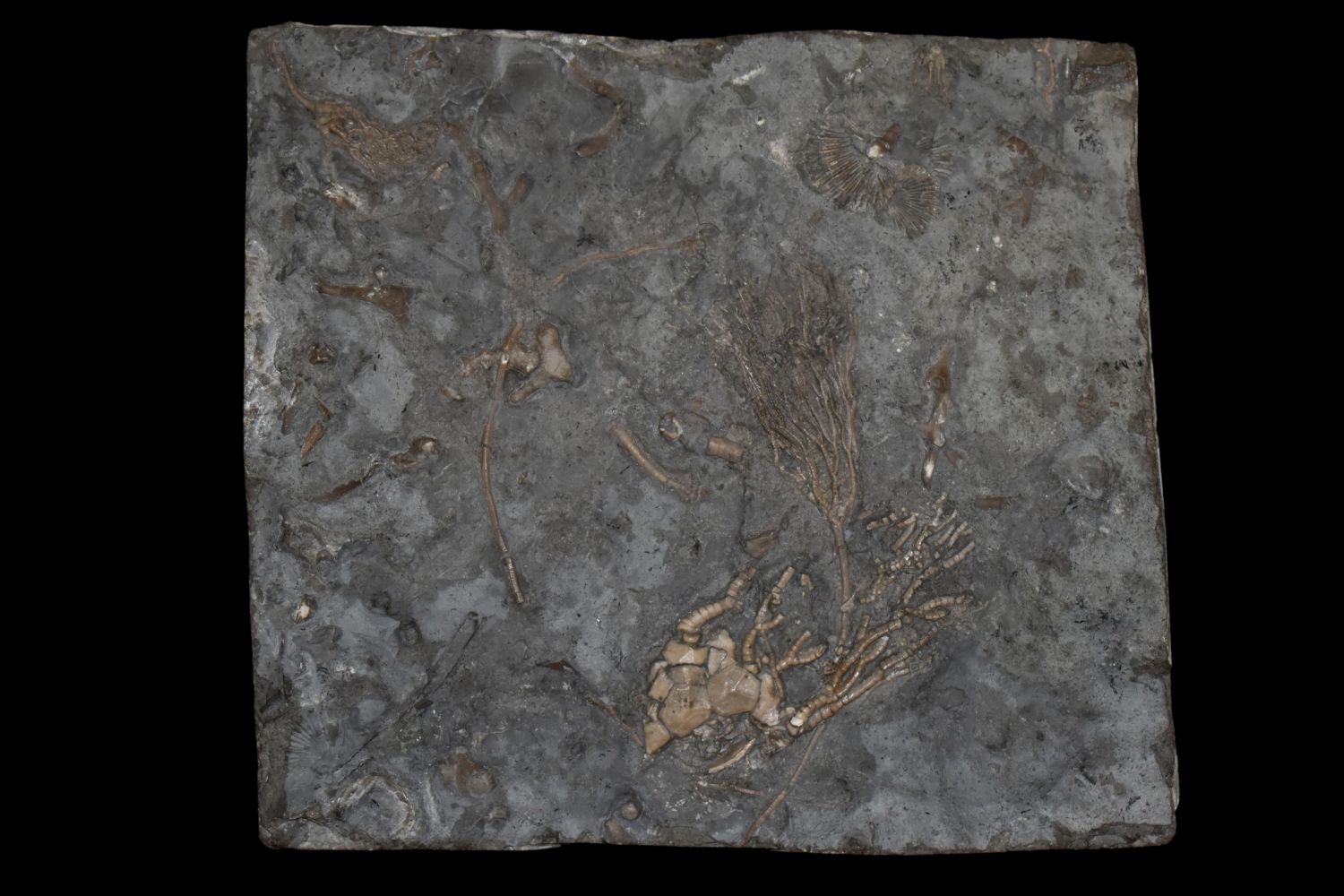 Multiple species crinoid plate. Crawfordsville, IN Nicely prepared by Michael Davis of Nature’s Spectrum. 5" x 4 3/4" Nice, Solid specimen