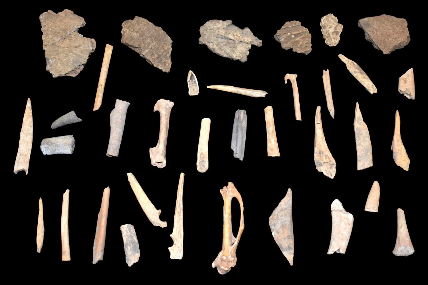 Frame of Site material Archaic cut bone and antler Artifacts from Eagle’s Point Site, Ohio Co., KY