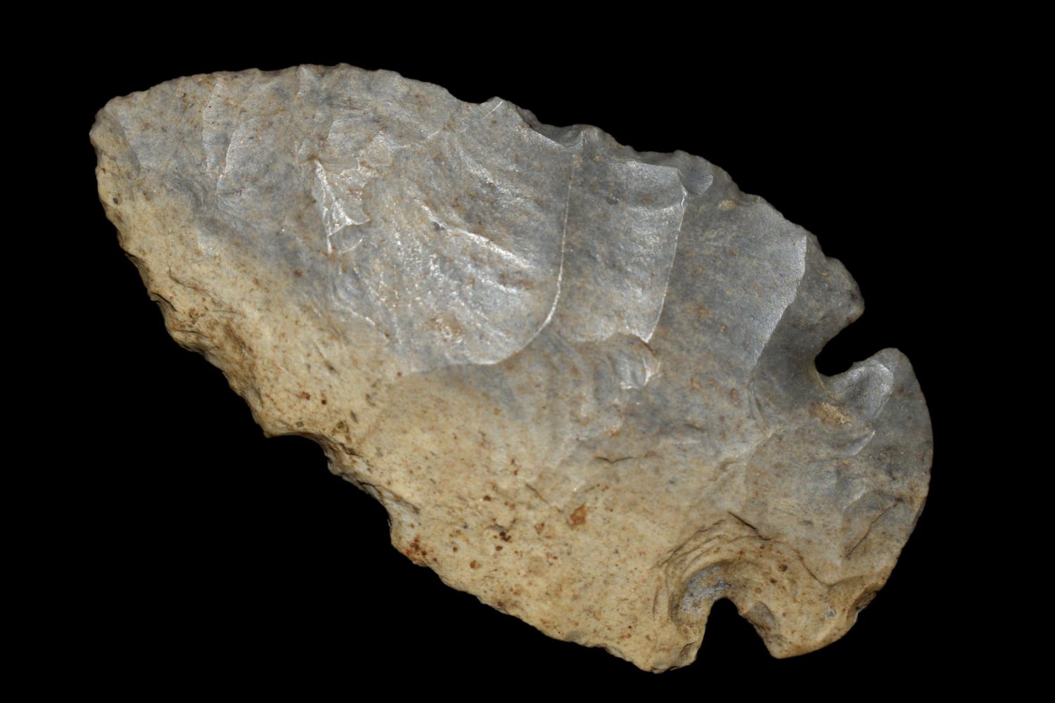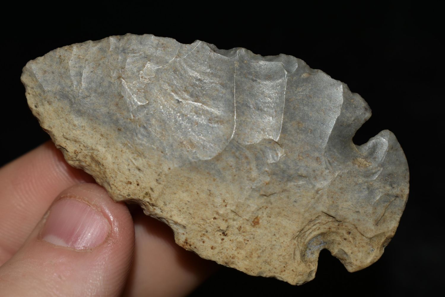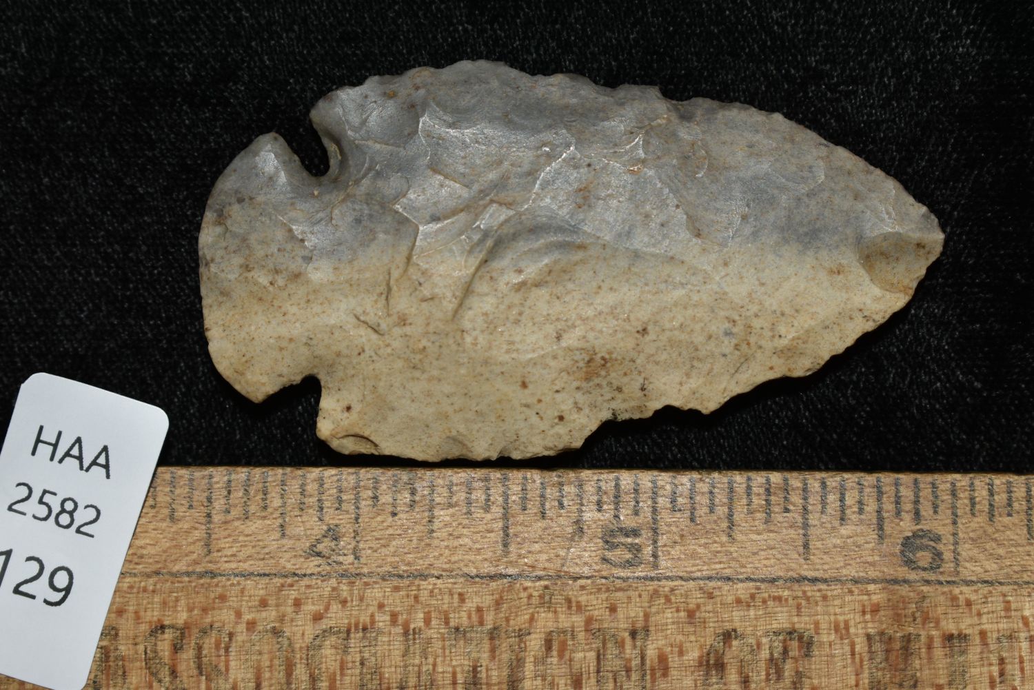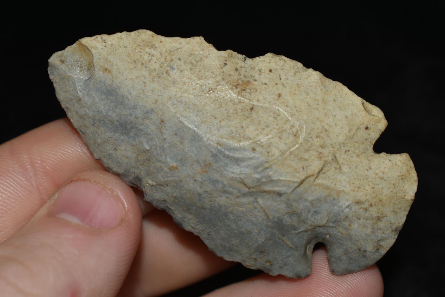 Nice 2 1/2" Dovetail found in Indiana made of colorful two-toned chert, Authentic Native American Arrowhead
