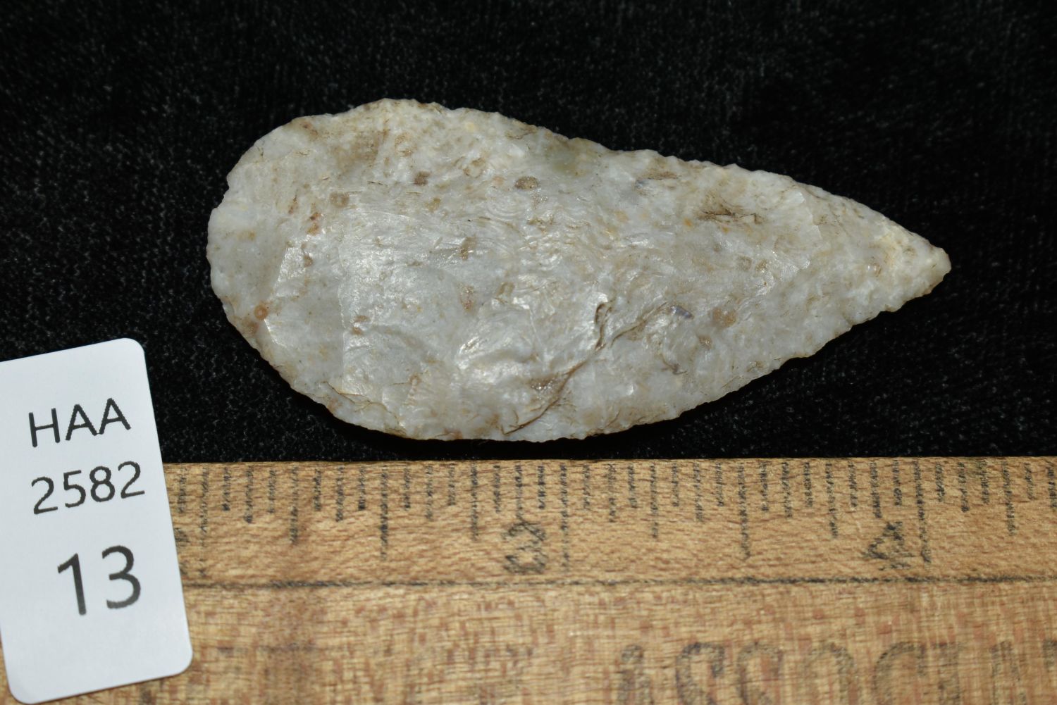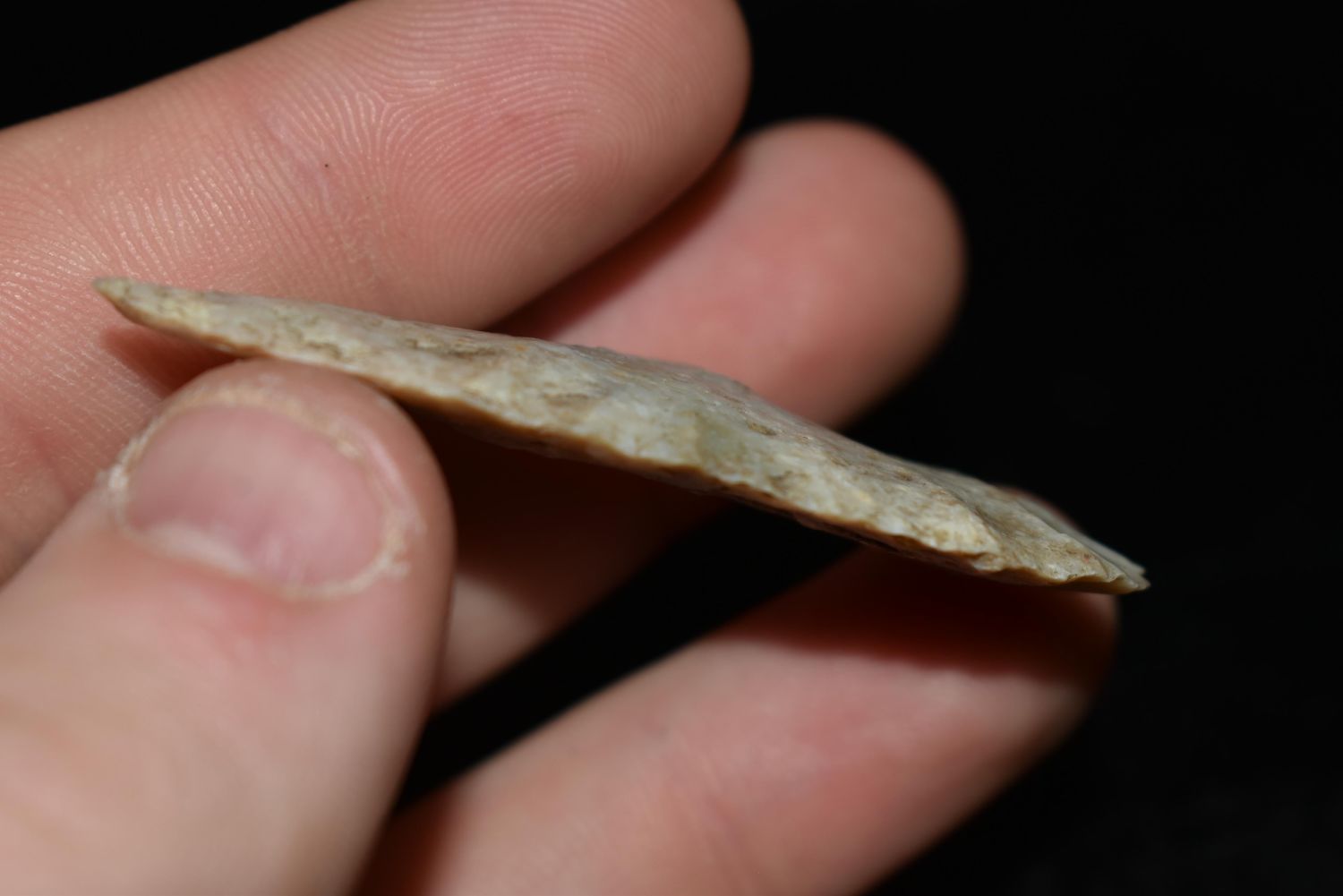 2 1/8" Wafer Thin Leaf Blade found in Dekalb Co., Illinois by Roland Schrieber in the town of Genoa, Authentic Native American Arrowhead