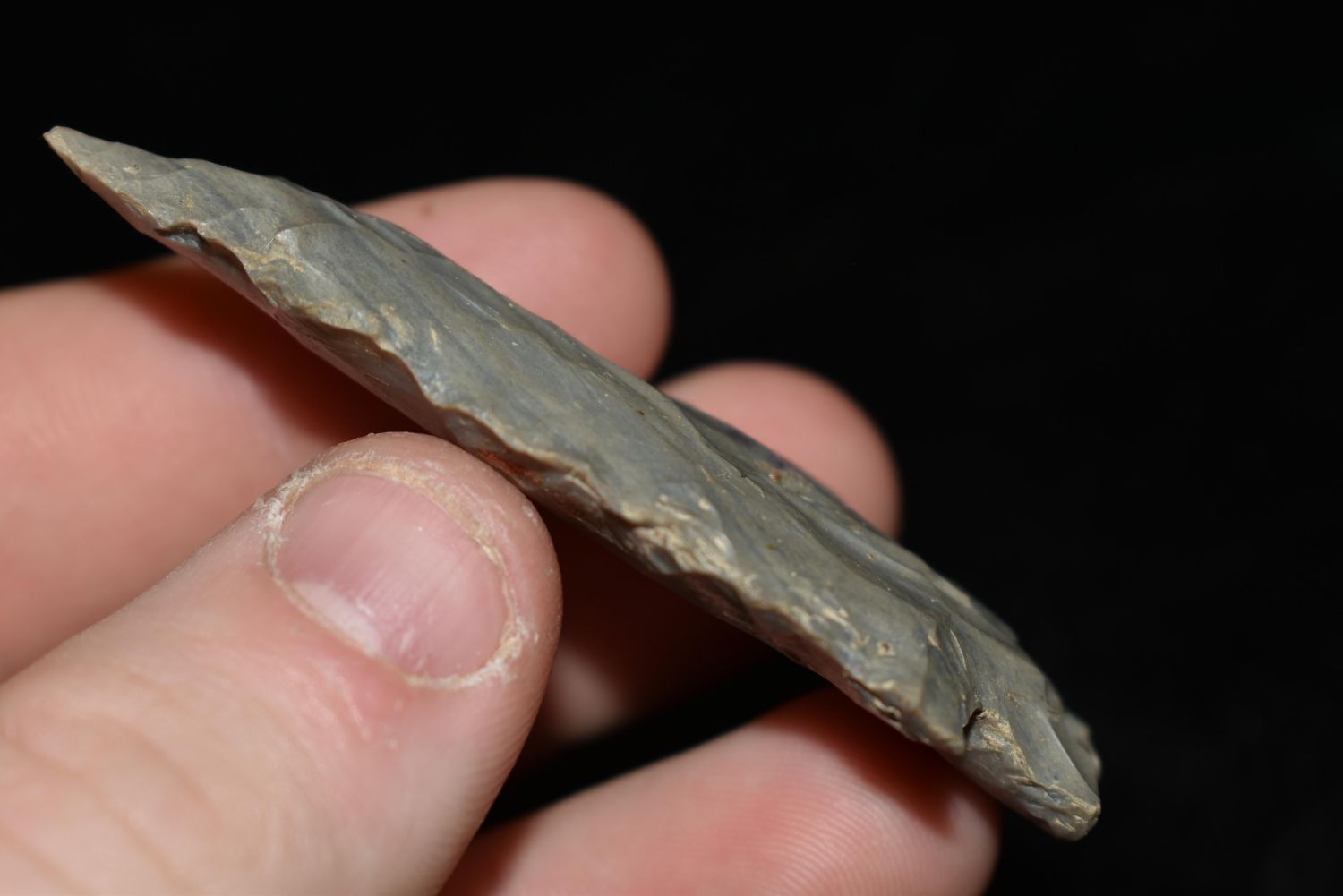 2 1/2" Kampsville found in Dekalb Co., Illinois by Roland Schrieber in the town of Genoa, Authentic Native American Arrowhead