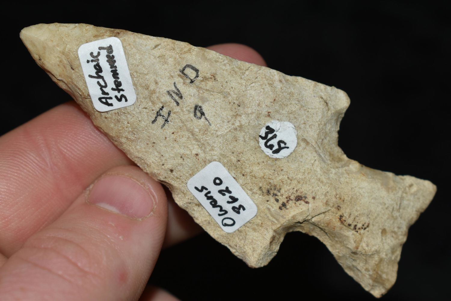 3 1/4" Archaic Stemmed Point, Davis COA, found in Indiana, Authentic Native American Arrowhead