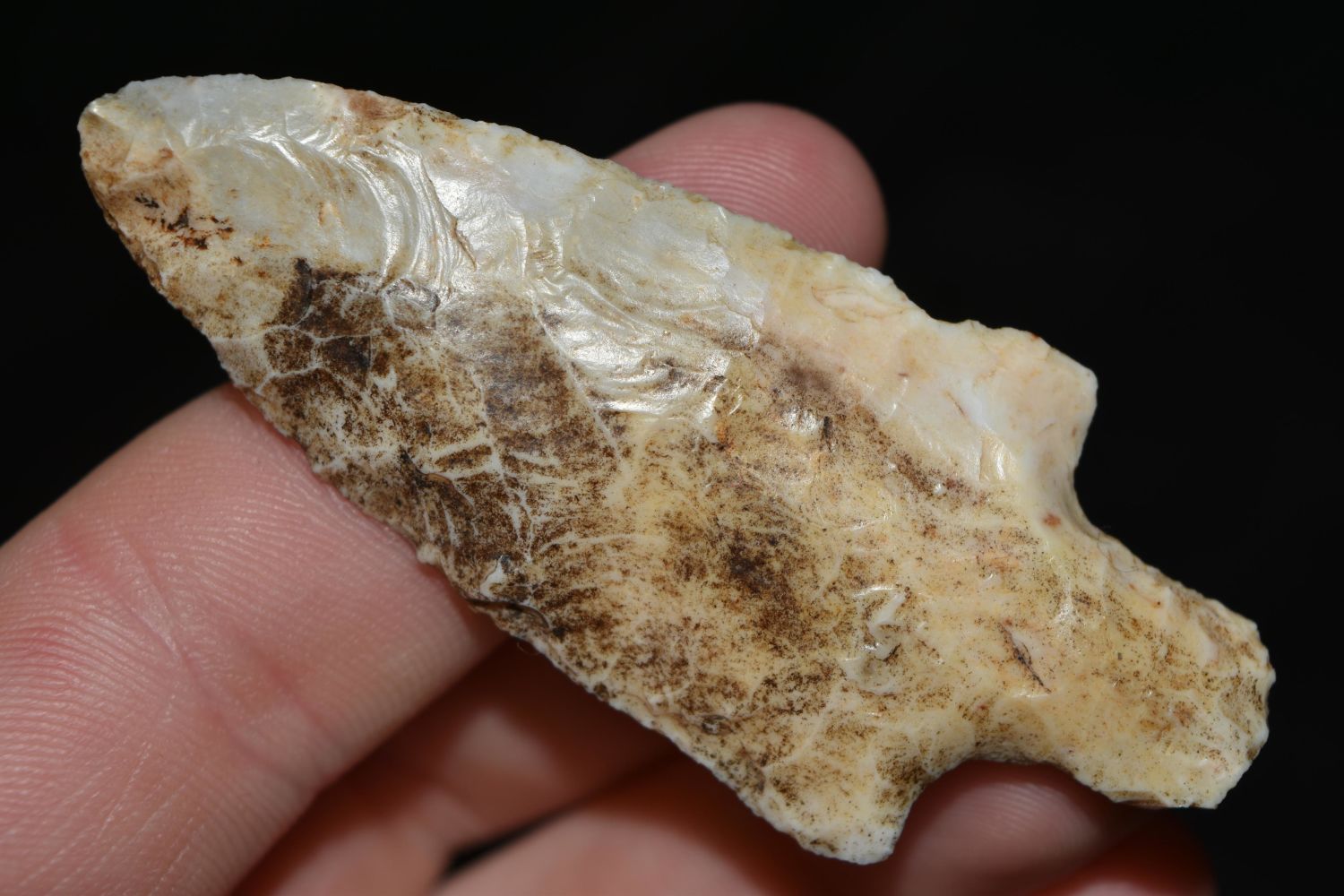 2 3/4" Creek Stained Stemmed Point found in Illinois, Authentic Native American Arrowhead