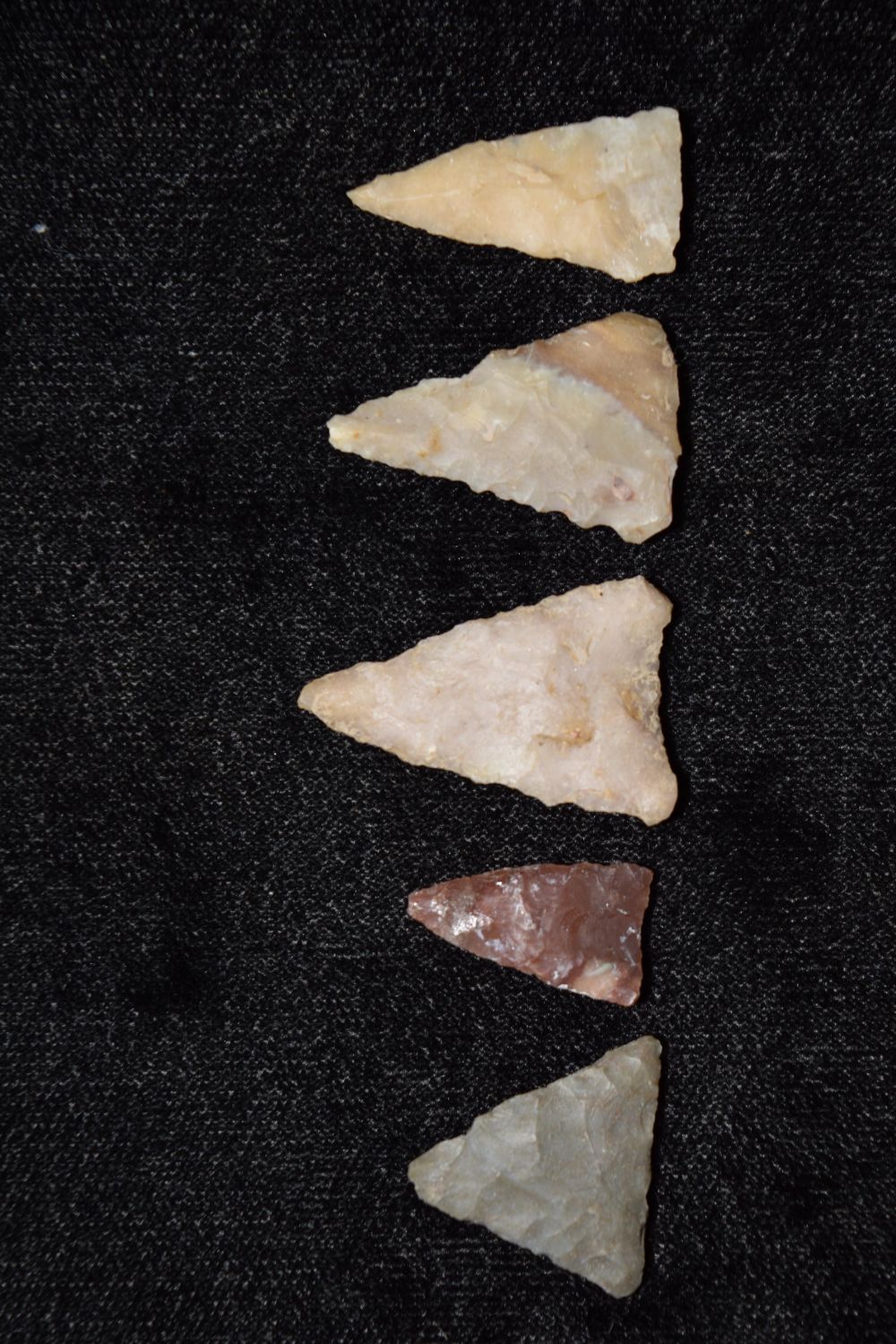 Lot of 5 Triangles, Authentic Native American Arrowhead
