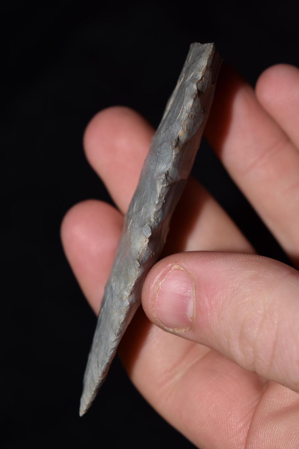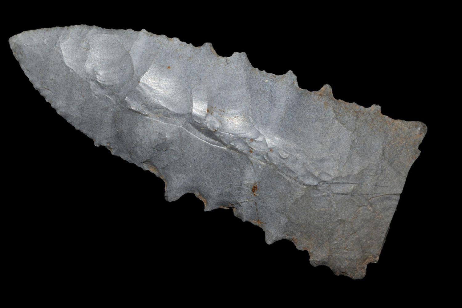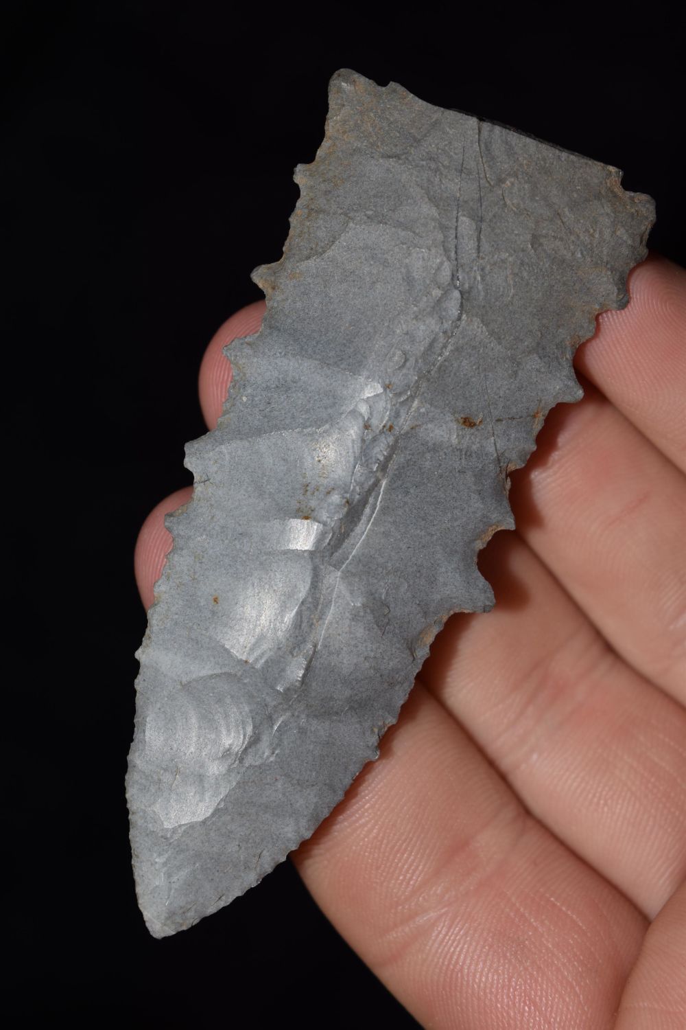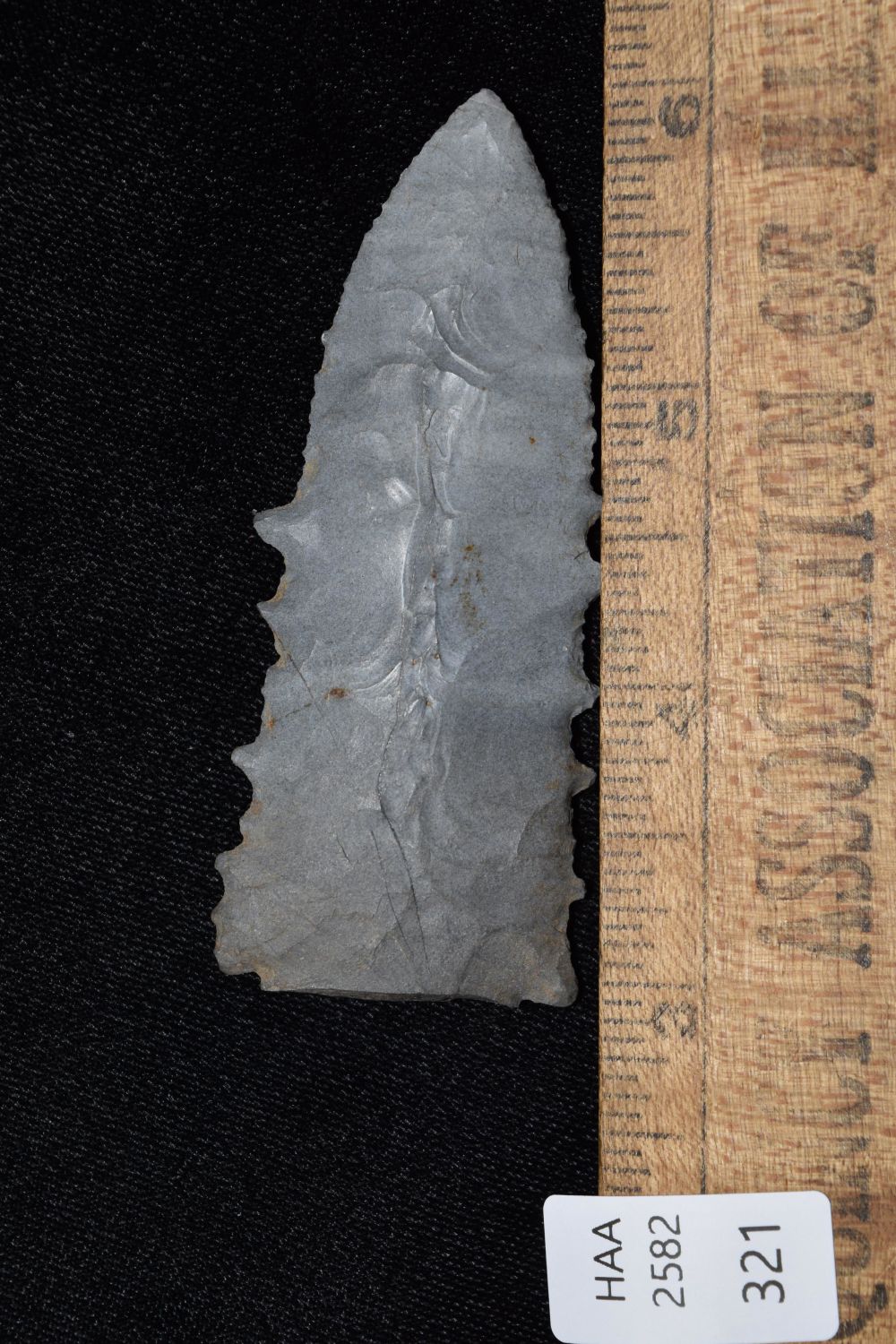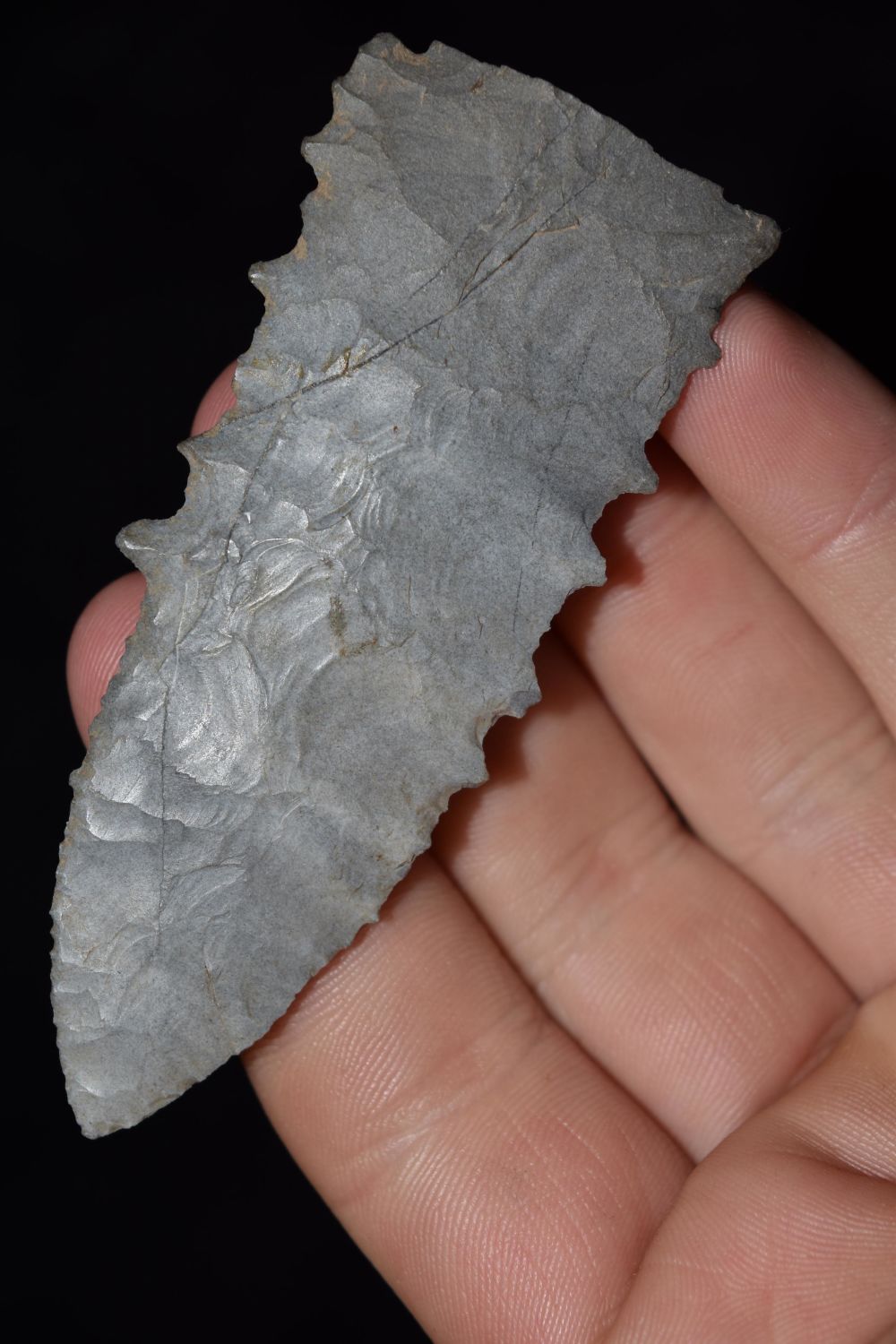 Toothy 3 1/8" Heartbreaker Kirk Corner Notch, Incredible Serrations, Great Canidate for Restoration, Authentic Native American Arrowhead