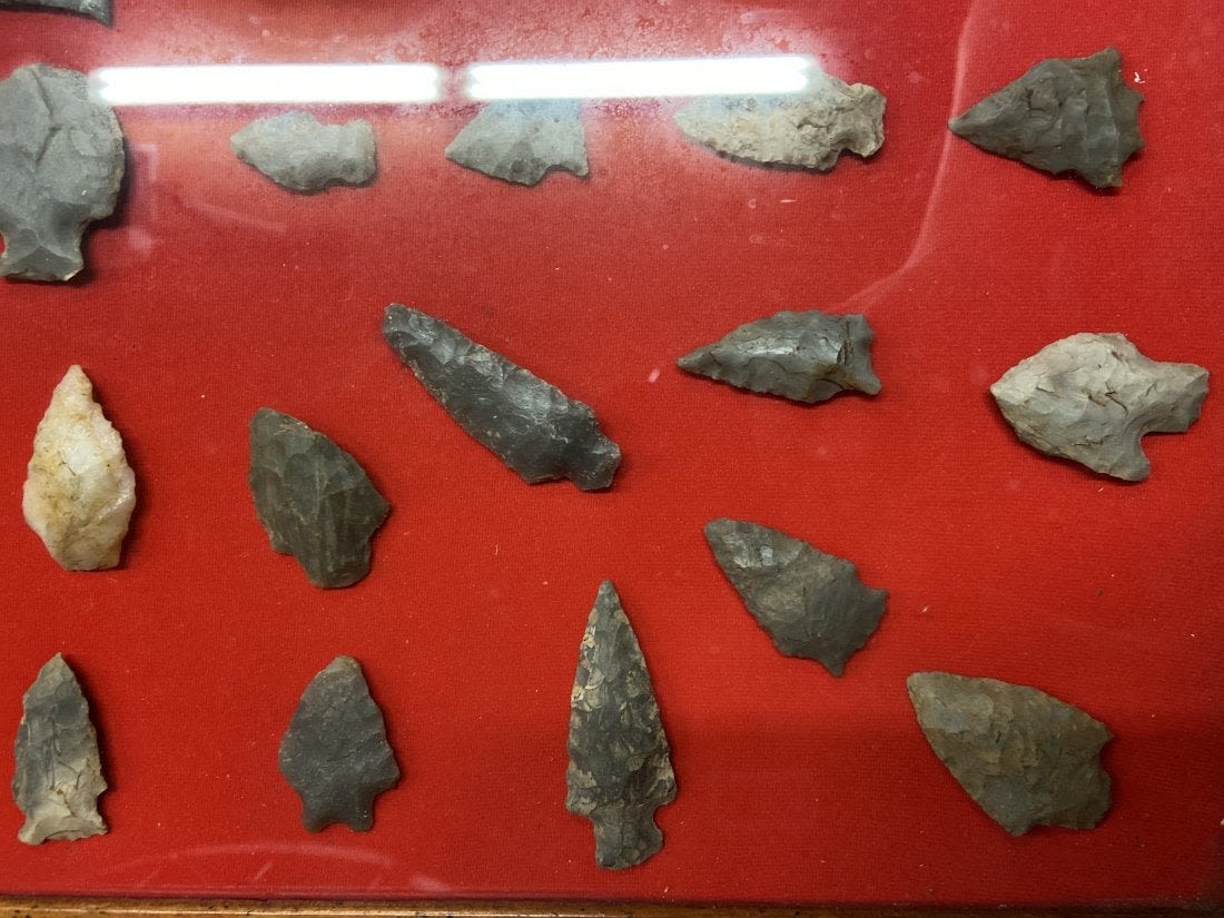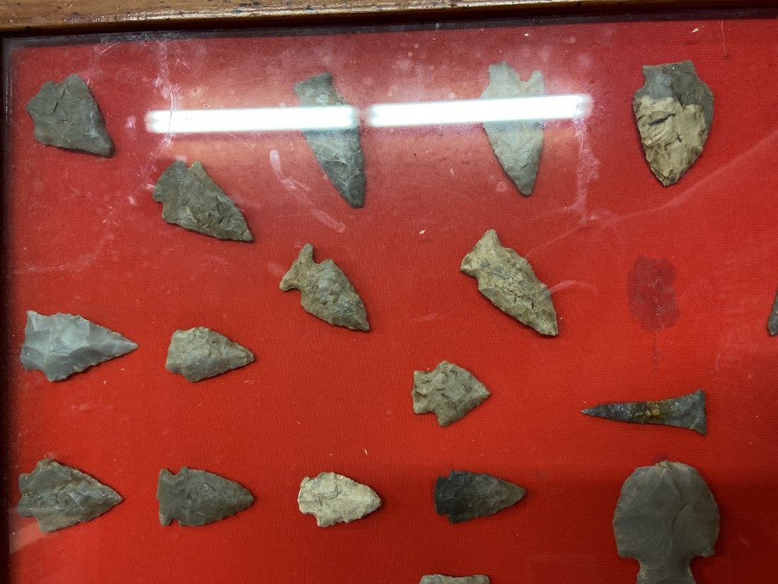 24 1/4" x 17 3/4" Frame Containing Arrowheads, Authentic Native American Arrowhead