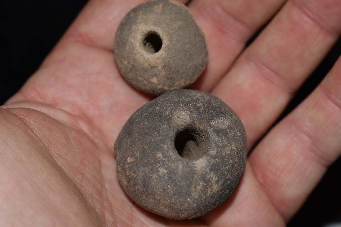 2x Pre Columbian Mayan Bead Guatemala Squash Effigy
