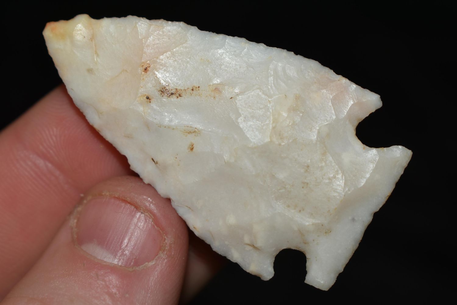 2" Crescent Quarry Corner Notch found in Illinois, Authentic Native American Arrowhead