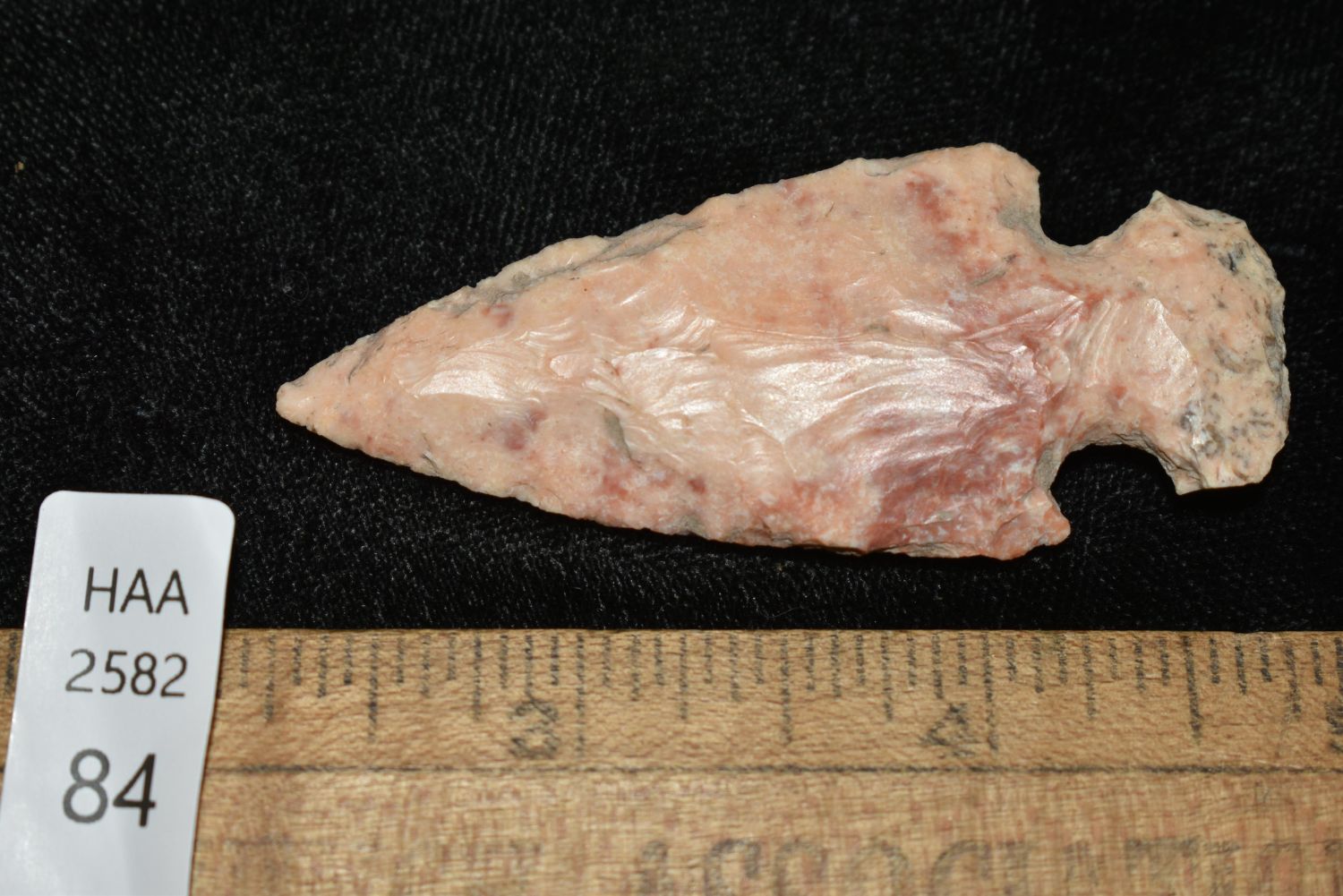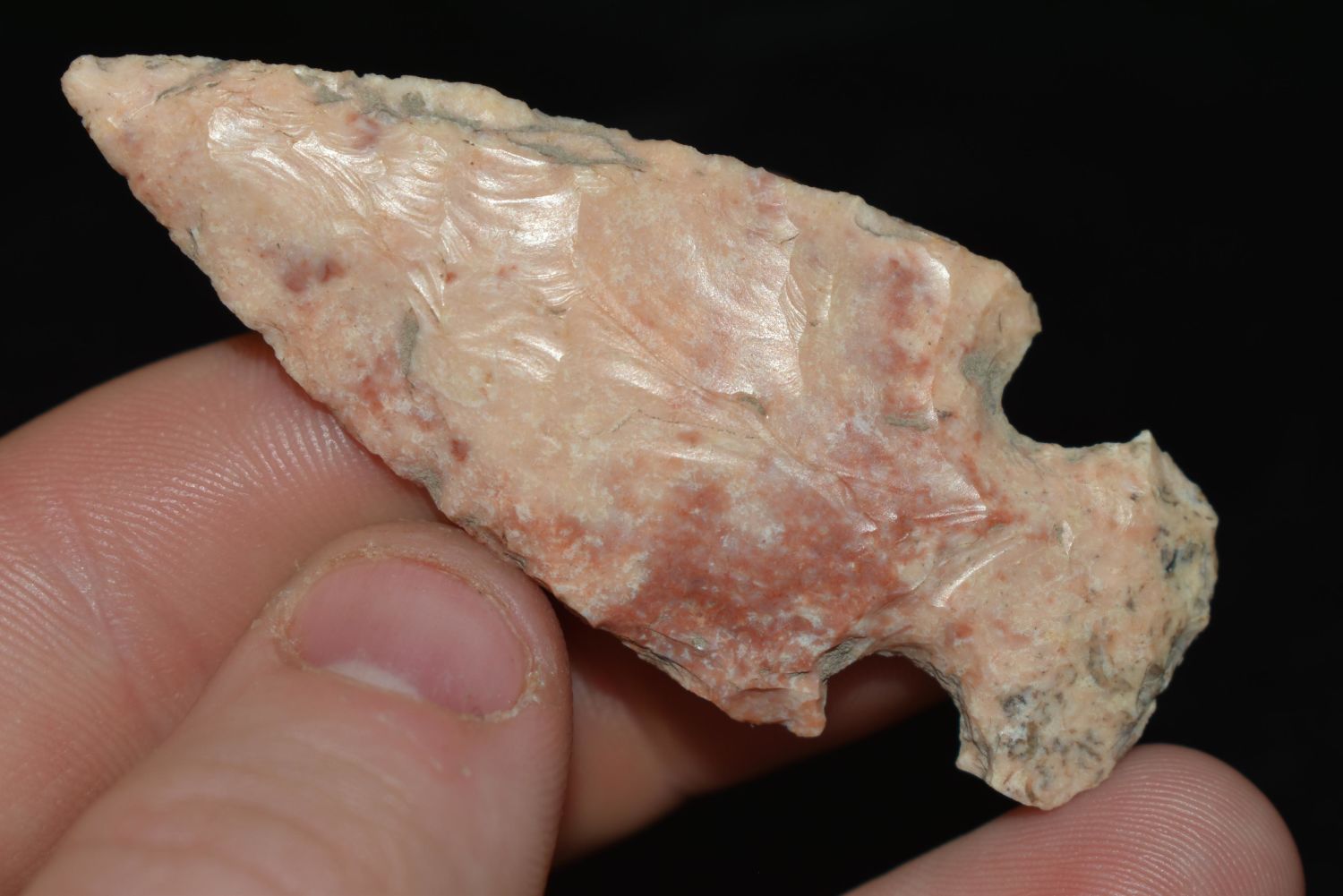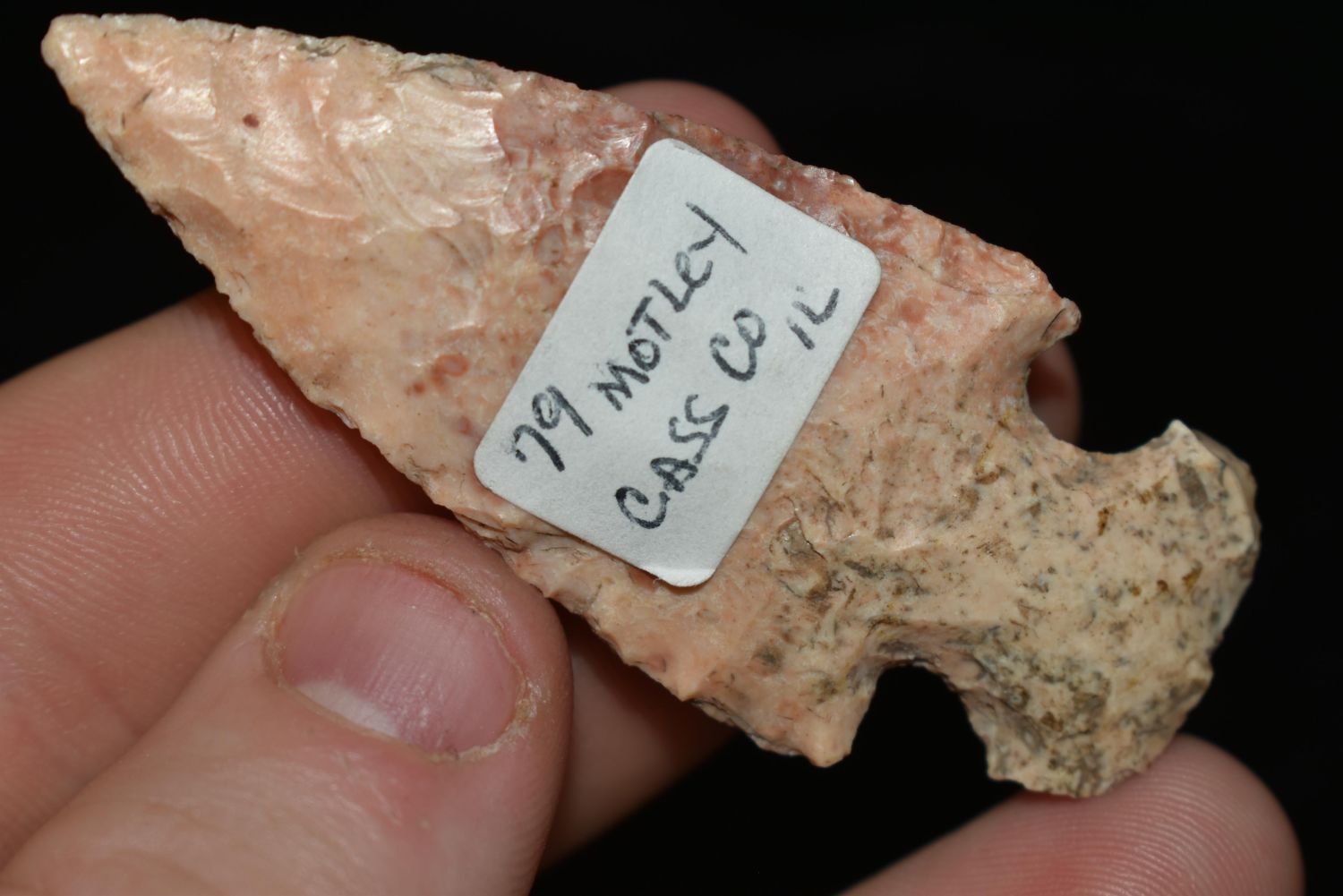 2 1/2" Motley found in Cass Co., Illinois, Great Color, Authentic Native American Arrowhead
